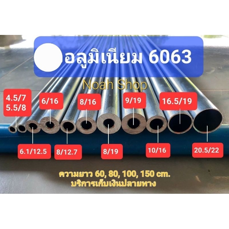 ราวอลูมิเนียม 6063 (รู8*หนา4*วงนอก16mm.) ยาว 59-120cm.