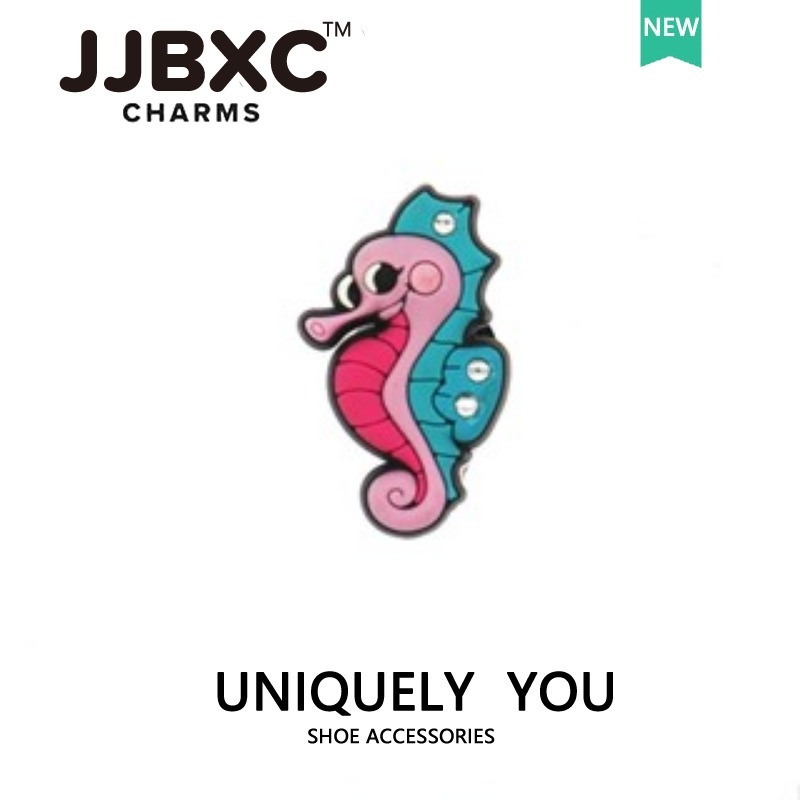 JJBXC ตัวติดรองเท้า charm รองเท้าพิเศษตกแต่งด้านบนหัวเข็มขัดชุดสัตว์ทะเล ม้าน้ำ เต่าทะเล ฉลาม อุปกรณ์ตกแต่งรองเท้า