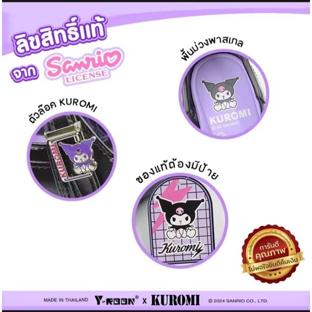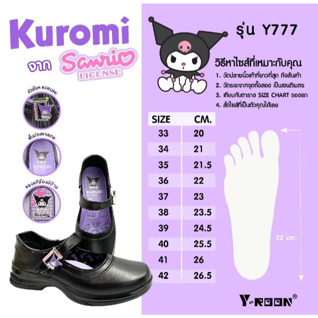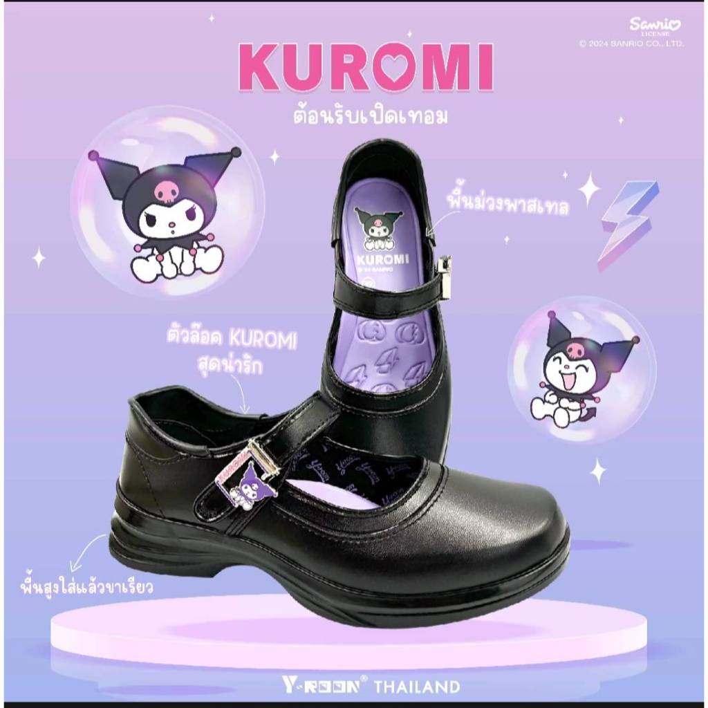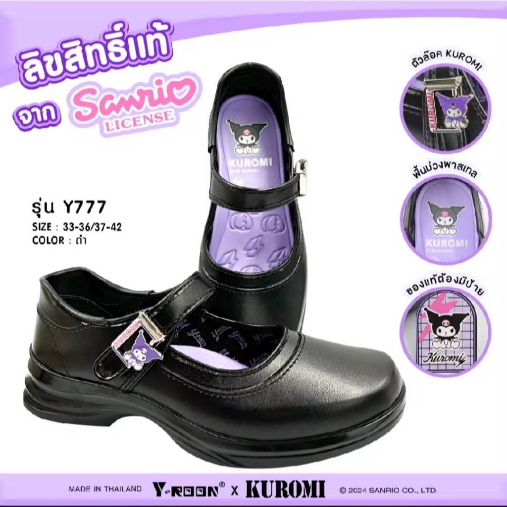 Y-ROON รองเท้านักเรียนหญิงหนังดำ พื้นสีม่วง รุ่นY777 ไซส์ 33-42 ลิขสิทธิ์แท้จากซาริโอ้ คุโรมิ