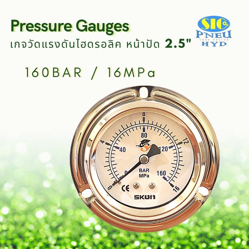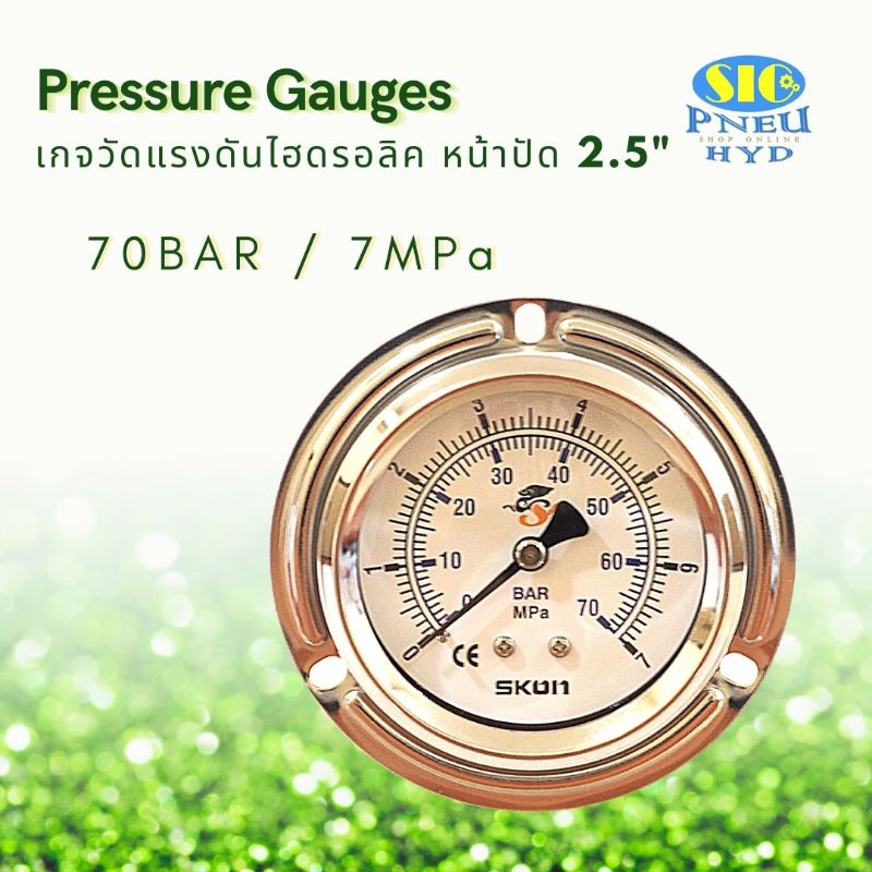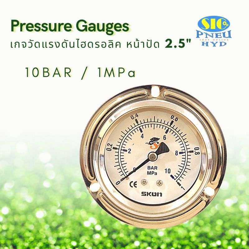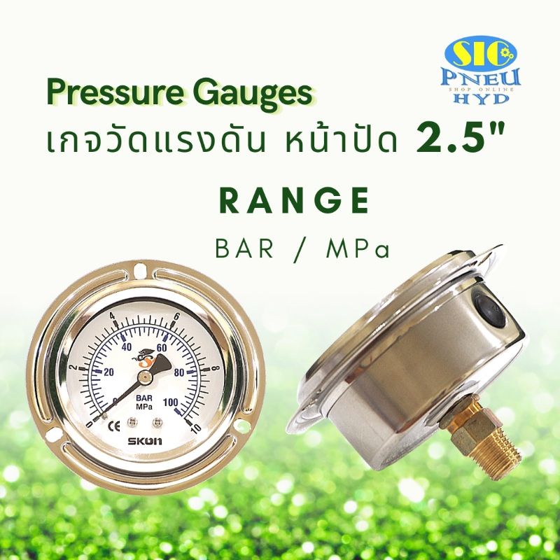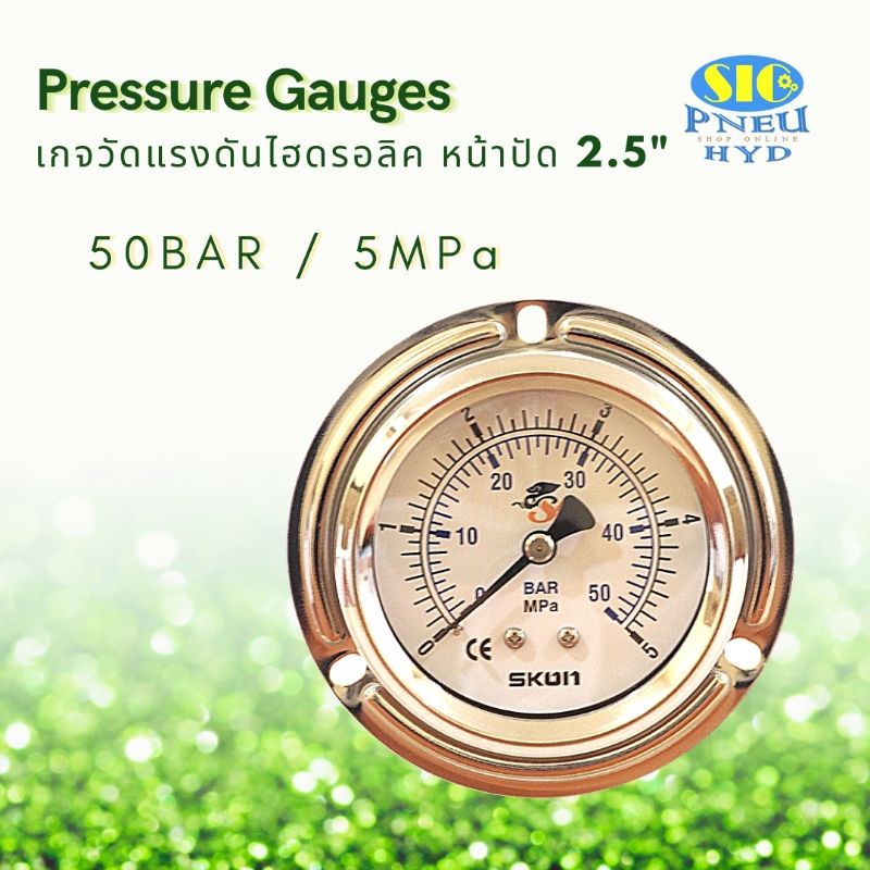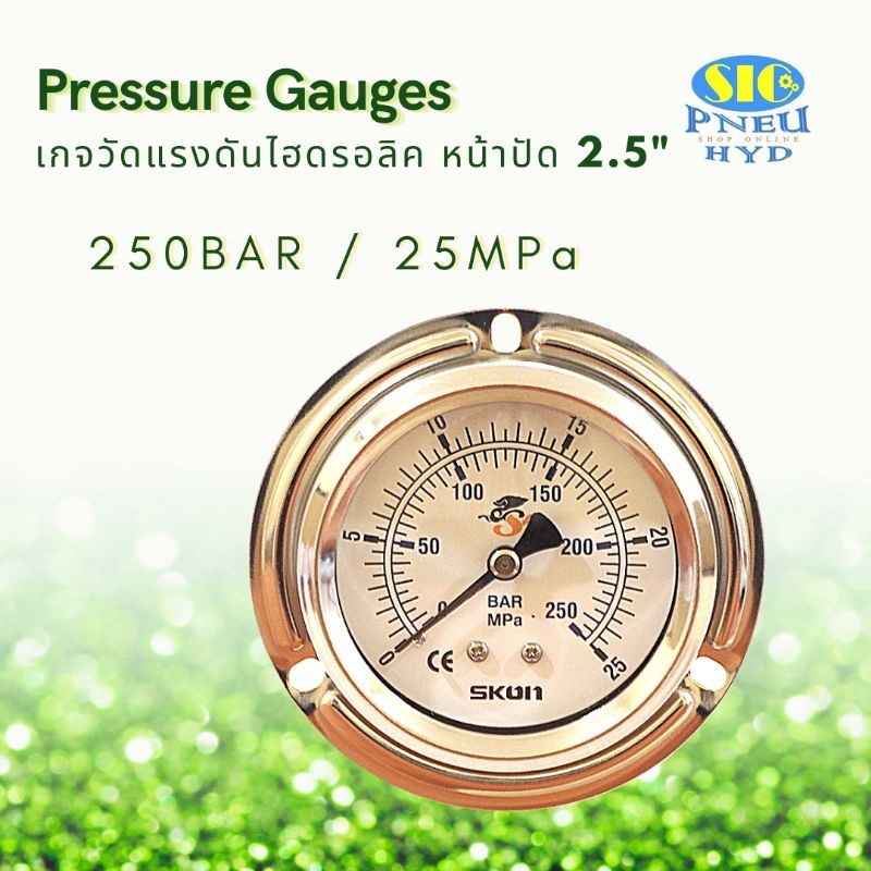 Pressure Gauges เกจวัดแรงดันไฮดรอลิค เกลียวออกหลังกลาง หน้าปัด 2.5" เกลียว 1/4" PT (SKON)