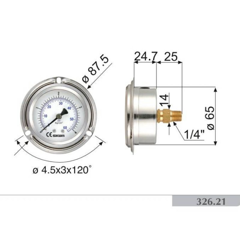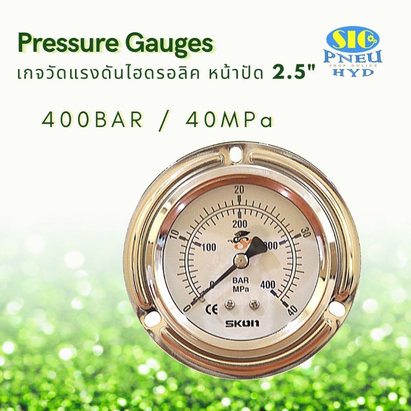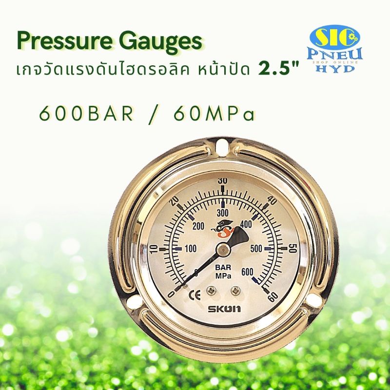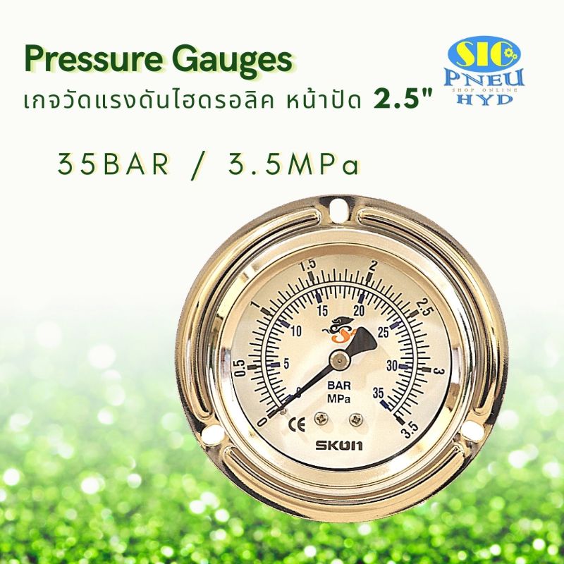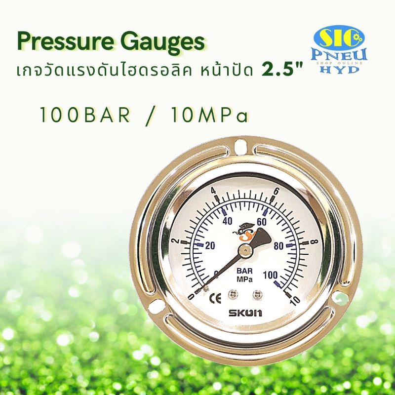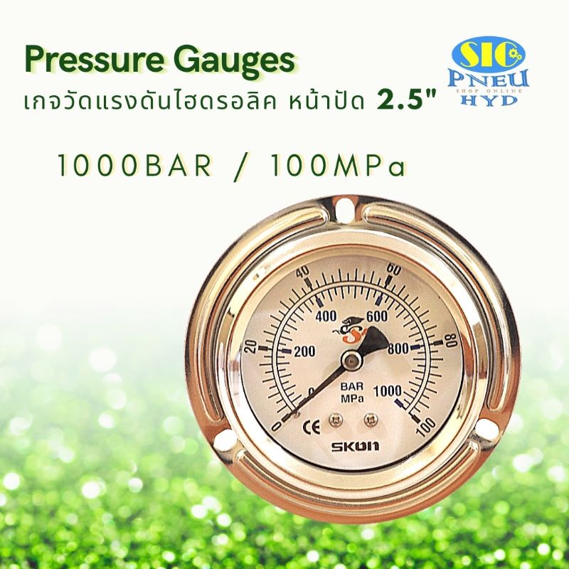 Pressure Gauges เกจวัดแรงดันไฮดรอลิค เกลียวออกหลังกลาง หน้าปัด 2.5" เกลียว 1/4" PT (SKON)