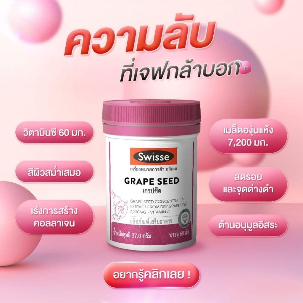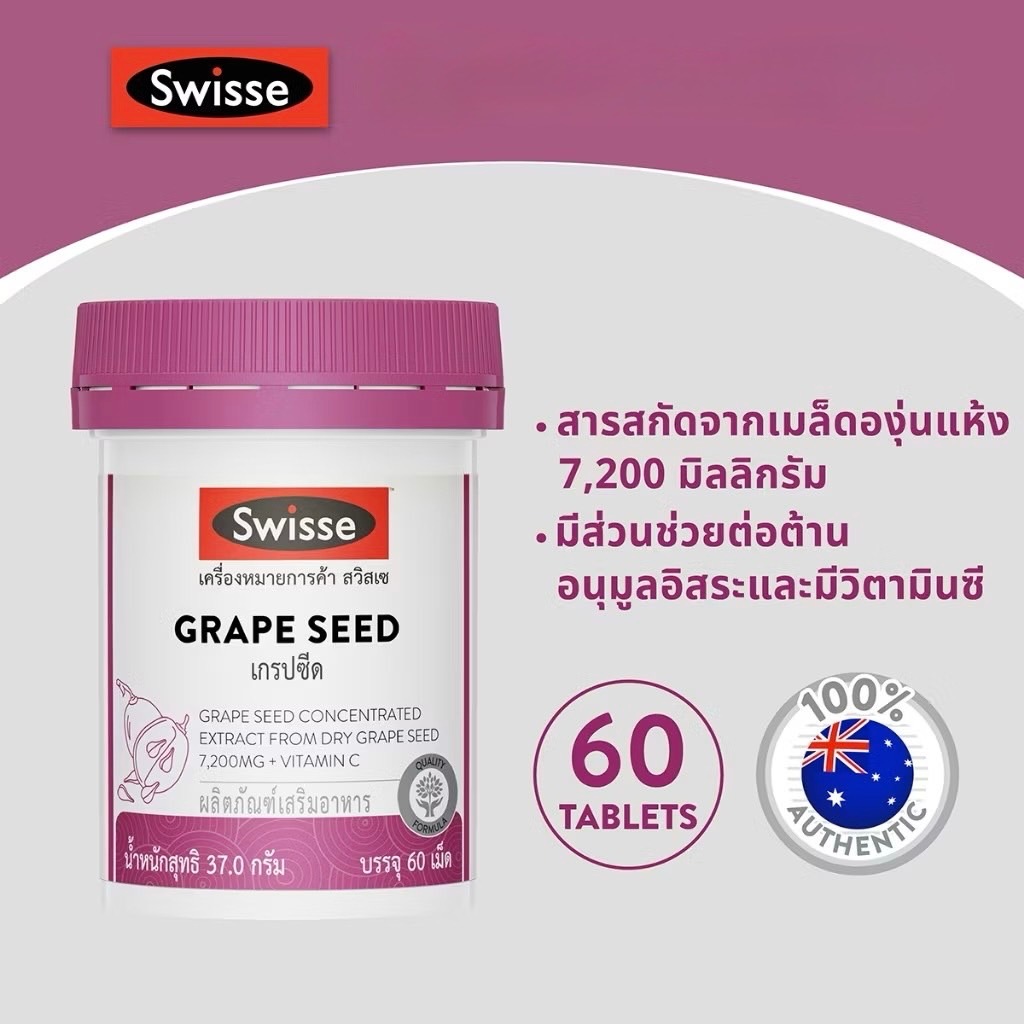 Exp.5/2027 (60 เม็ด) Swisse Grape Seed สวิสเซ เกรปซีด สารสกัดจากเมล็ดองุ่น