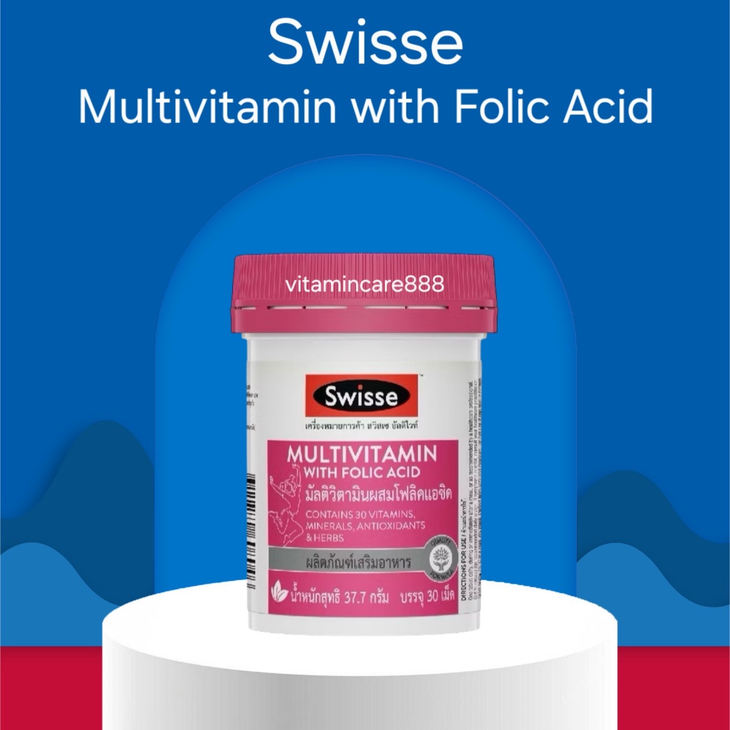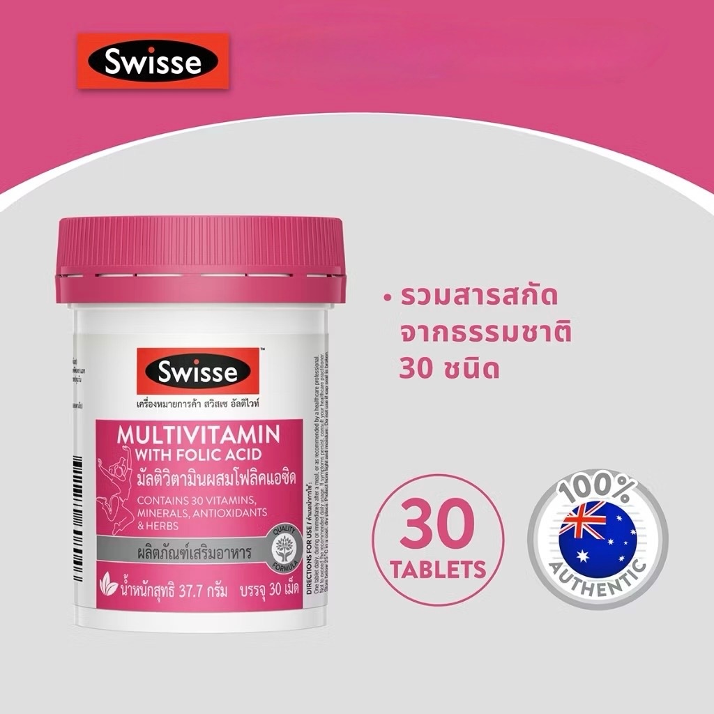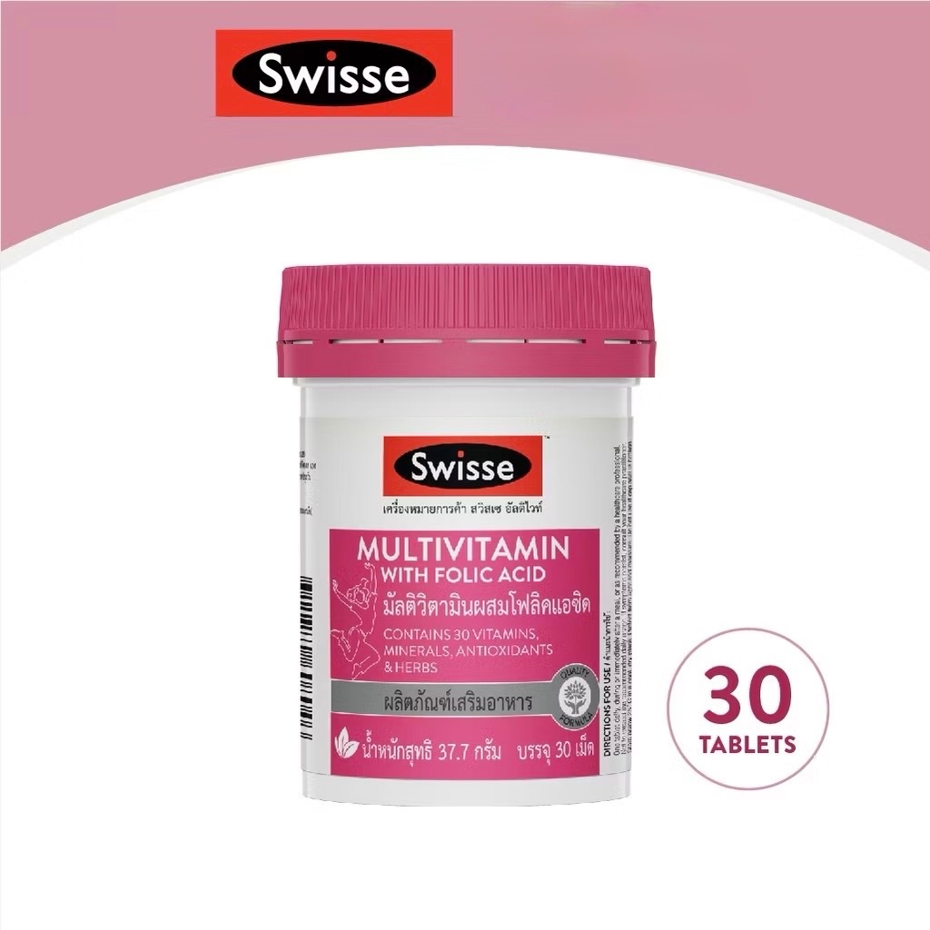 Exp.6/2027 (30 เม็ด) Swisse Multivitamin With Folic Acid วิตามินรวมสำหรับผู้หญิง สวิสเซ มัลติวิตามินผสมโฟลิคแอซิด