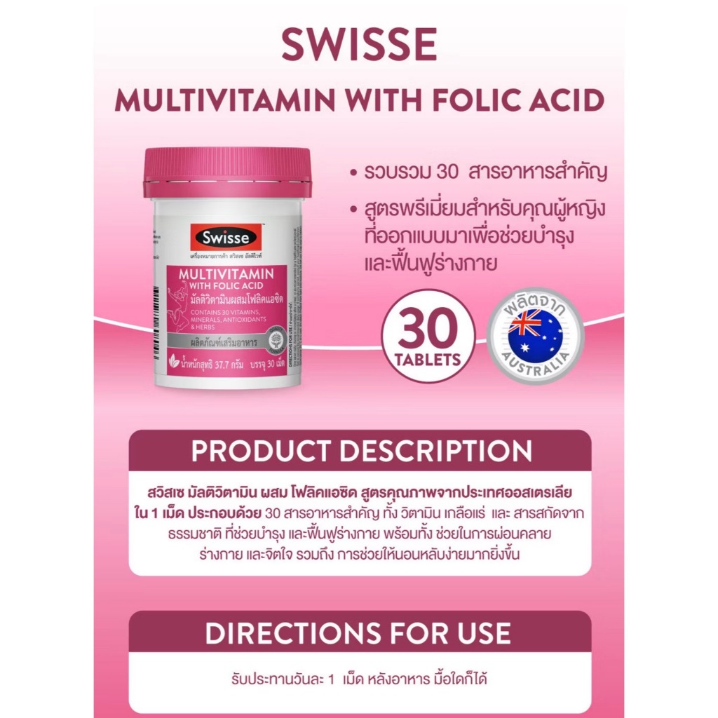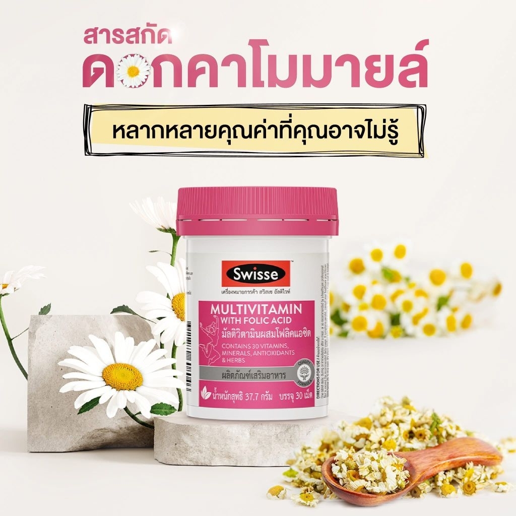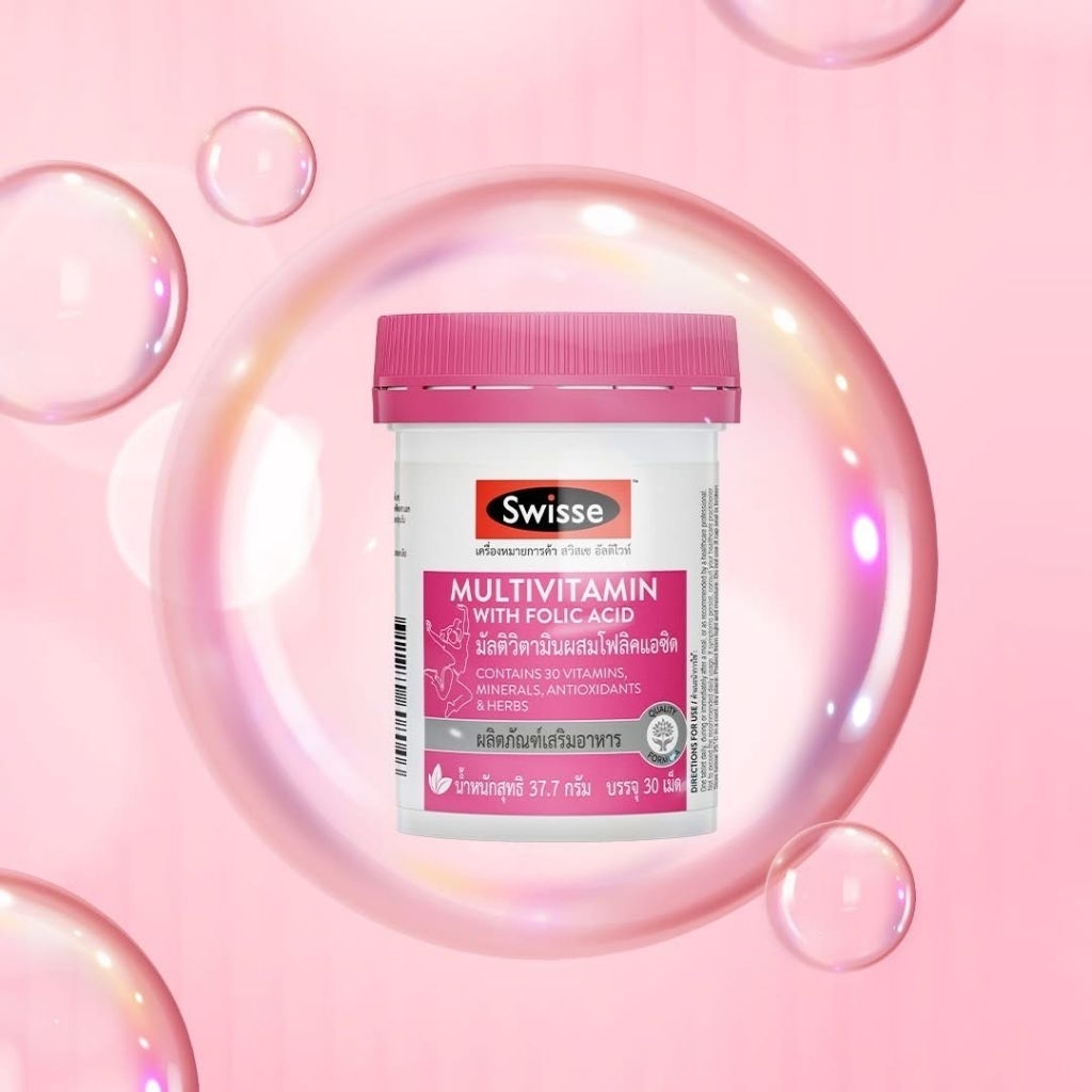 Exp.6/2027 (30 เม็ด) Swisse Multivitamin With Folic Acid วิตามินรวมสำหรับผู้หญิง สวิสเซ มัลติวิตามินผสมโฟลิคแอซิด