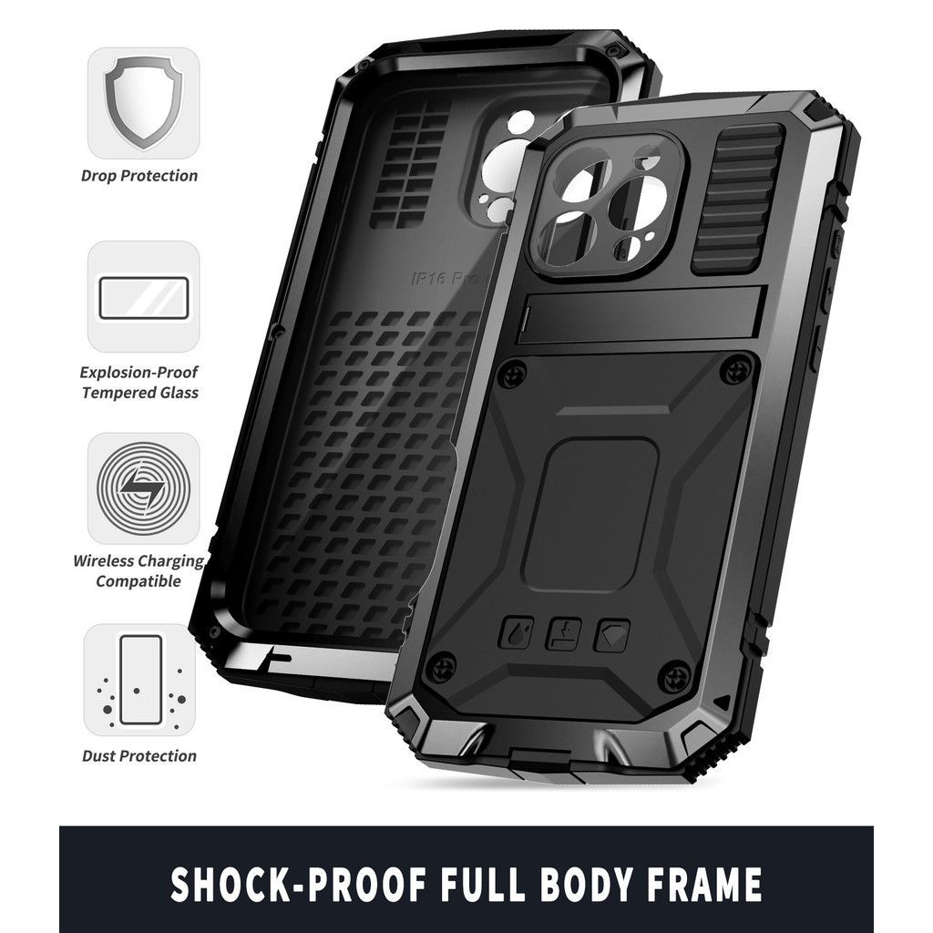 สําหรับ ไอโฟน 16 15 14 13 12 11 มือโปร สูงสุด บวก เคสกันกระแทกเกราะโลหะเต็มป้องกันโลหะผสม + ป้องกันกล้องด้านหลังพร้อมตัวป้องกันหน้าจอในตัว
