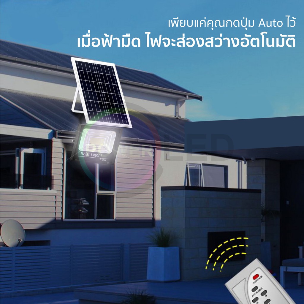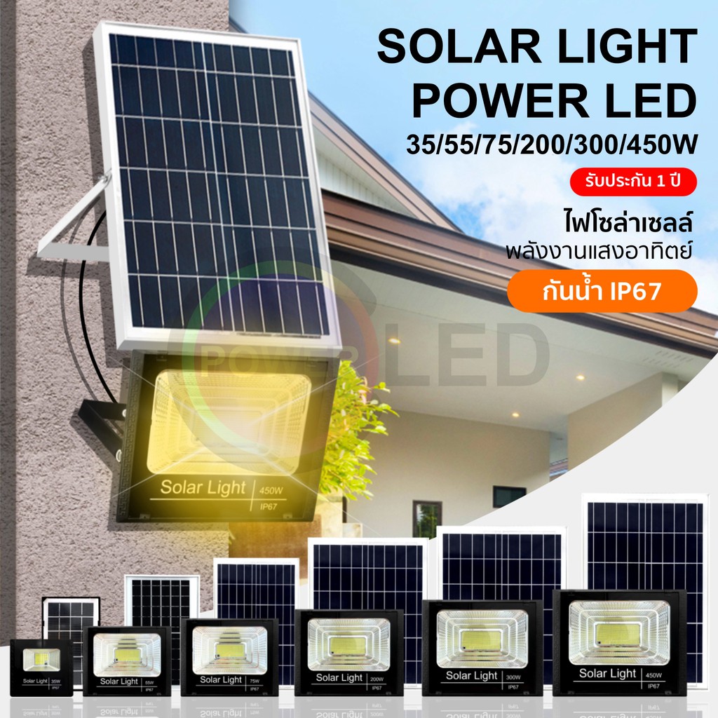 ไฟโซล่าเซลล์ solar cell 35W 55W 75W 200W 300W Solar light แบบ LED แสงสีเหลือง โคมไฟติดผนัง โคมไฟถนน ไฟสปอร์ตไลท์ led