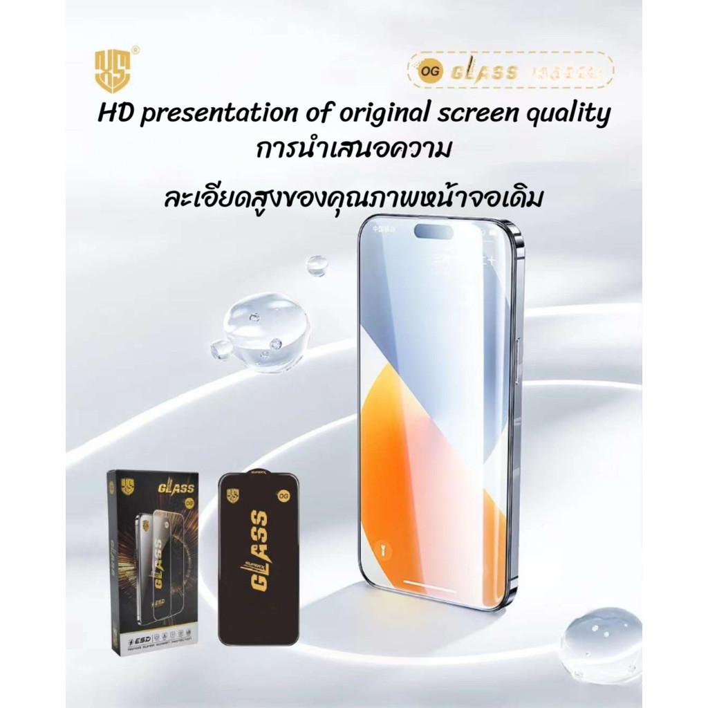 (ราคาส่ง 10in1)ฟิล์มกระจกสำหรับiPhoneแบบเต็มจอจอโค้ง ป้องกันไฟฟ้าสถ OG15Promax/14PROMAX/13PROMAX/14/13 Pro/12 Pro Max/11