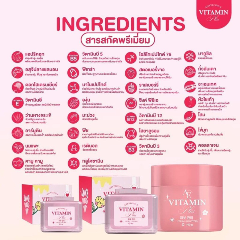 [ร้านเจ้าของแบรนด์] Annyeong E Vitamin Plus อันยอง อี วิตามิน พลัส ครีมอันยองอี หน้ากระจ่างใส ลดสิว100กรัม