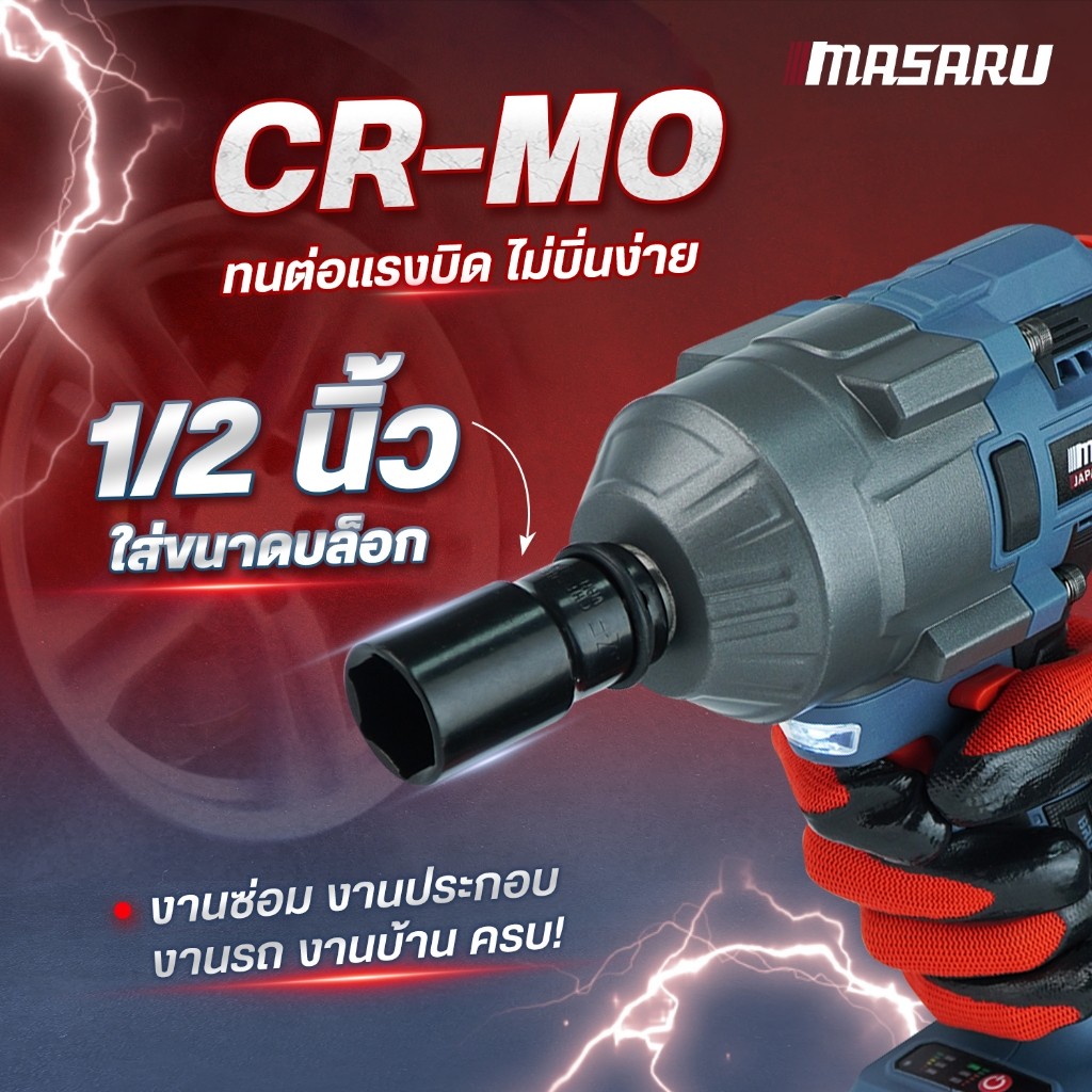 MASARU ลูกบล็อกไร้สาย ชุดลูกบล็อก 1/2 นิ้ว 10 ชิ้น SADW-200 ขันน็อต ถอดน็อต ใช้กับบล็อกลม