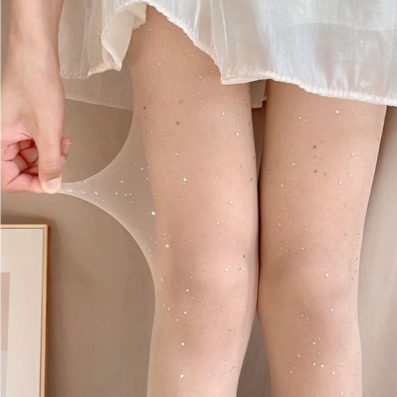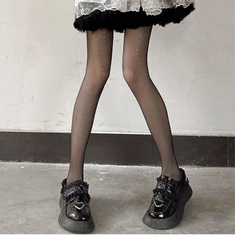 ถุงน่องแฟชั่นสตรี บางเฉียบ แวววาว กันตะขอเกี่ยว การออกแบบเลื่อม ถุงเท้าโลลิต้า JK