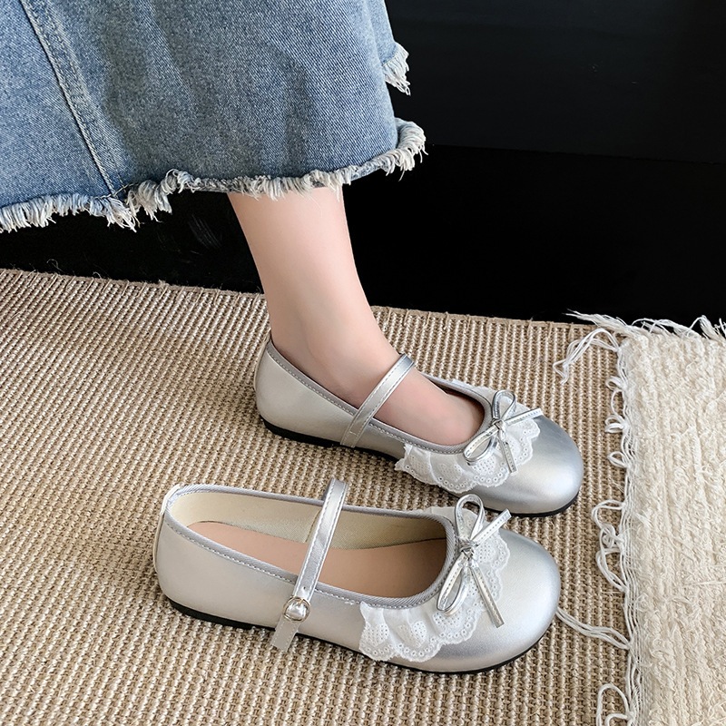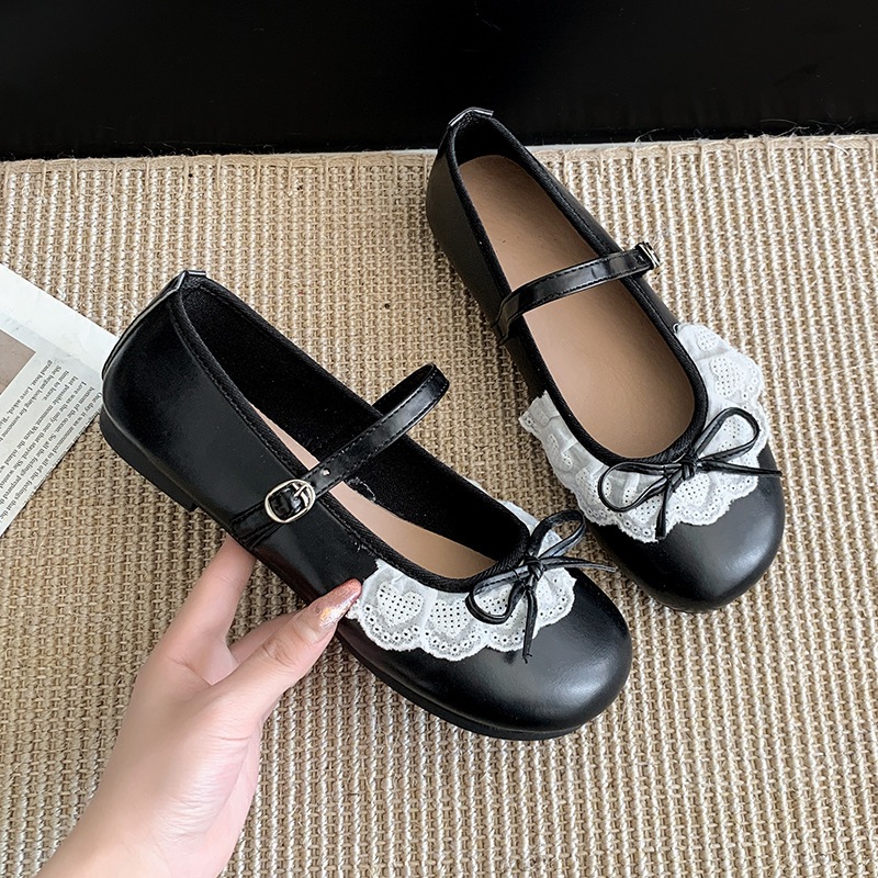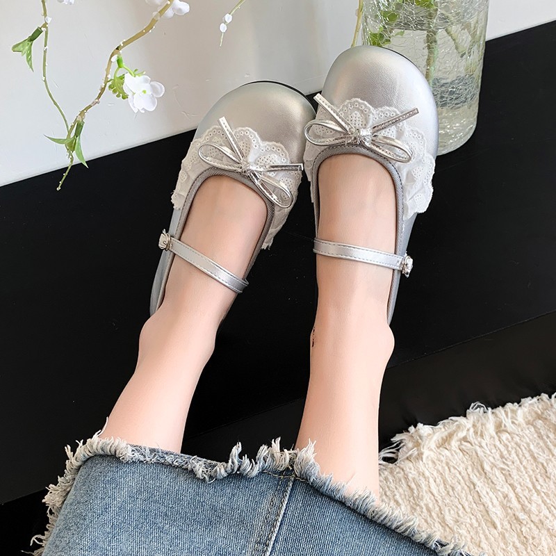 รองเท้าแมรี่เจนสไตล์เกาหลีสำหรับผู้หญิง รองเท้าหนังผู้หญิงหัวกลม ตกแต่งโบว์ สไตล์วิทยาลัย