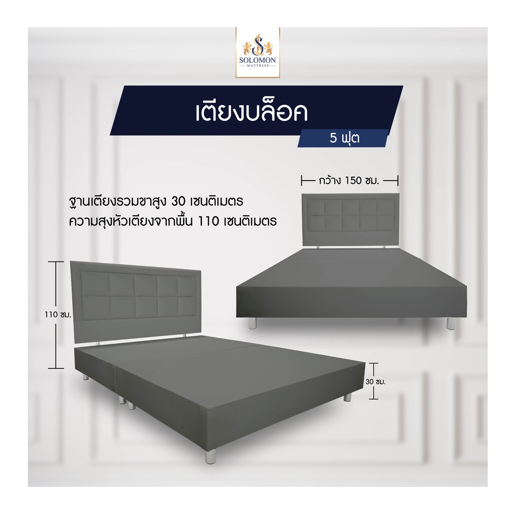 SOLOMON เตียงบล็อก ไม้อย่างดี หุ้มหนังPVC 6 ฟุต 5 ฟุต 3.5 ฟุต สีเทา