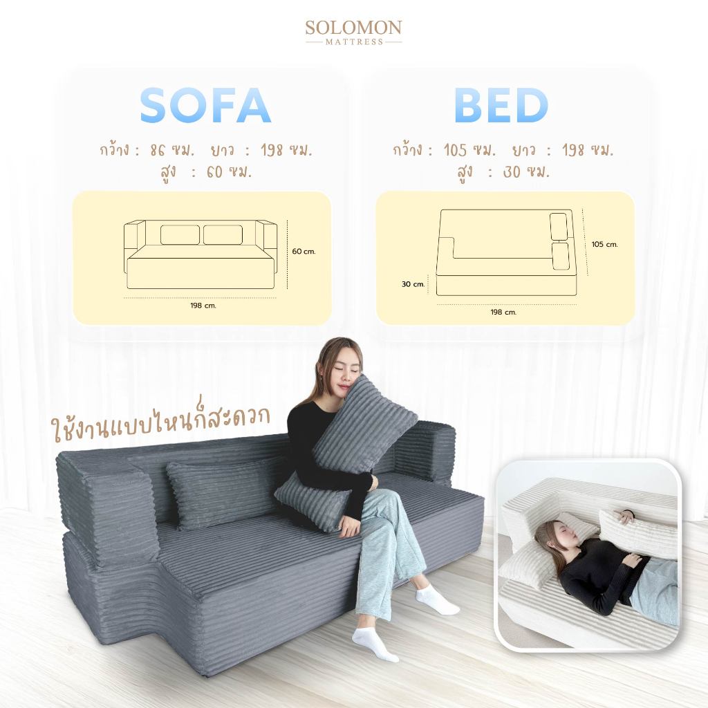 SOLOMON โซฟาปรับนอน โซฟาเบด รุ่น Lume 2in1 ใช้งานได้หลากหลาย