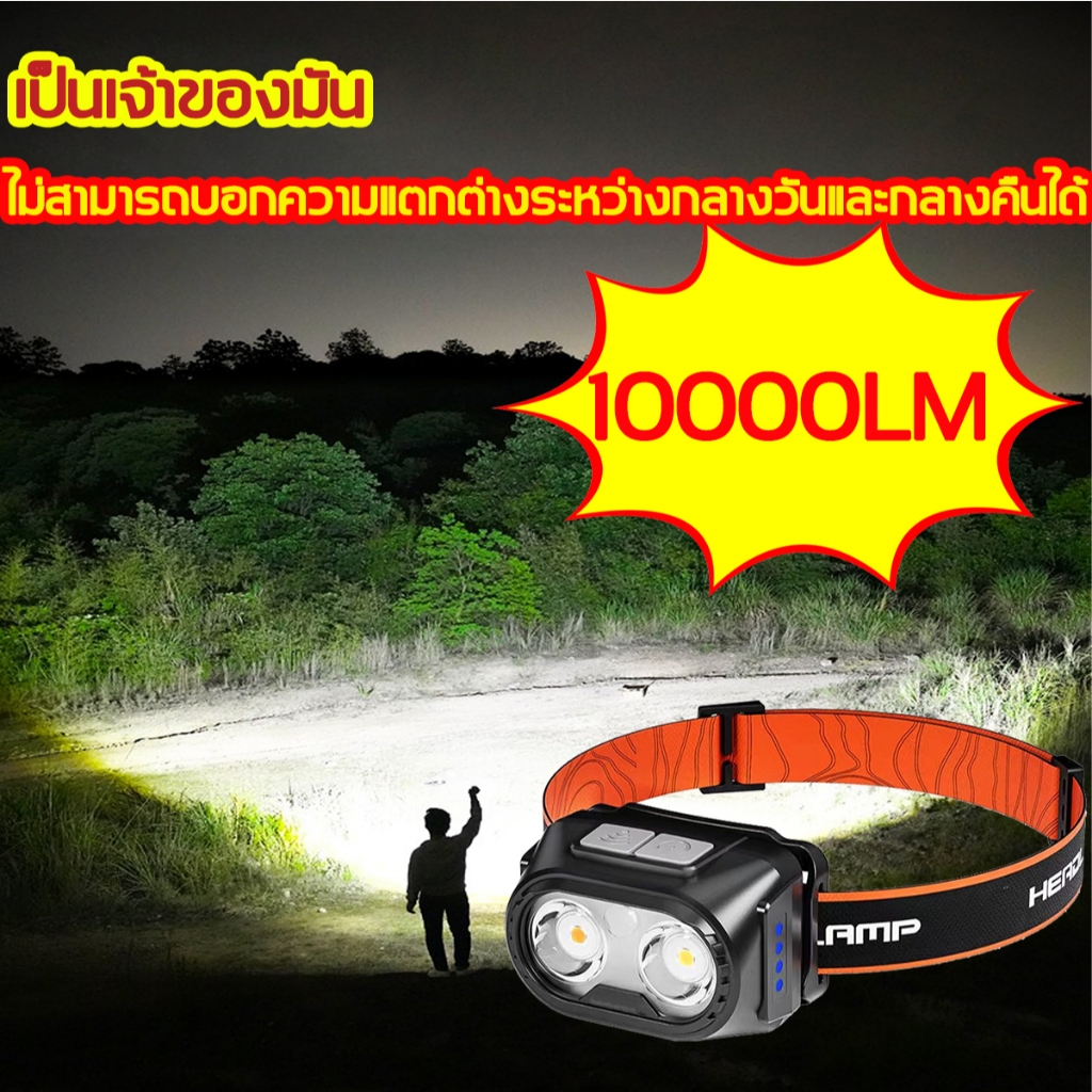 ไฟฉายคาดหัว led ชาร์จไฟ ไฟฉายคาดหัวแท้ 10000LM รับประกัน 5 ปีไฟฉายคาดหัวแบบเซนเซอร์ ไฟฉายคาดหัวแรงสูง ไฟฉายคาดหัวแท้