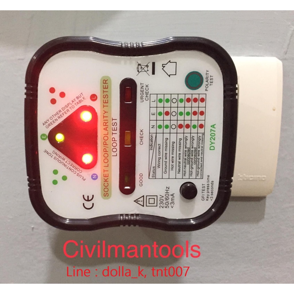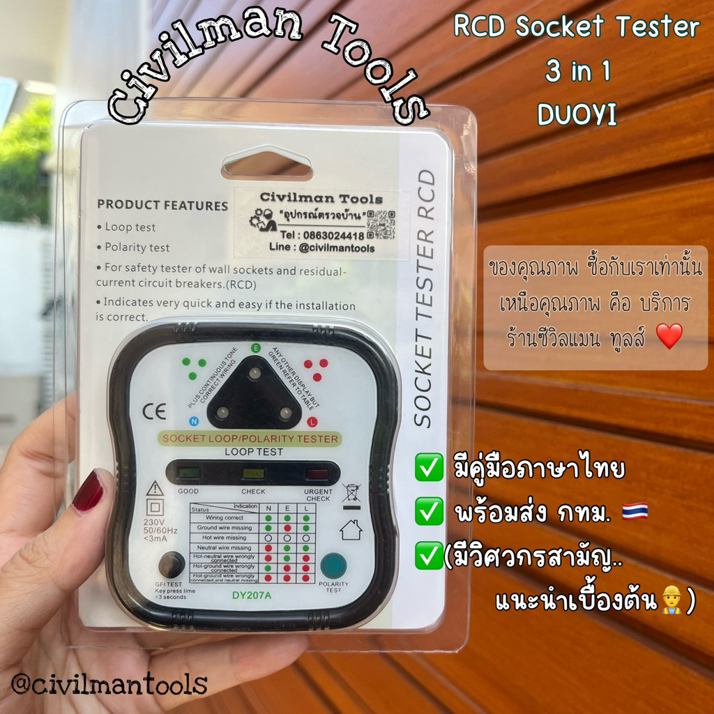 🇹🇭 Socket Tester RCD 3 in 1 เครื่องตรวจระบบไฟฟ้าในบ้าน DY207A ( Polarity, Loop Impedance, RCD ) (มีคู่มือภาษาไทย)