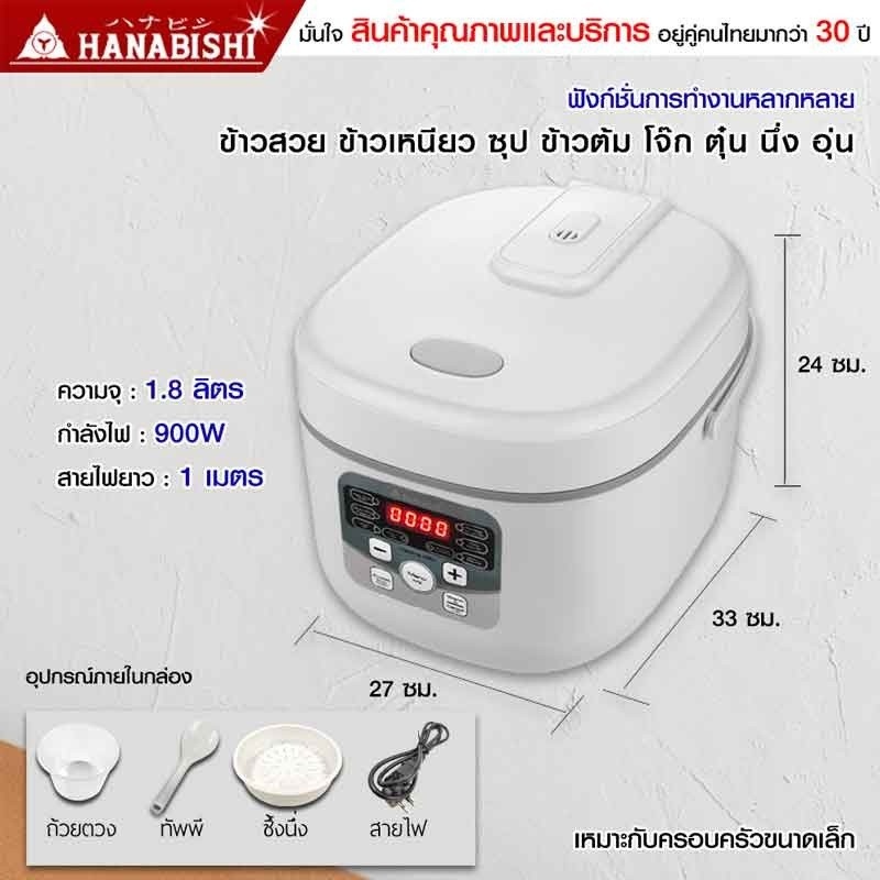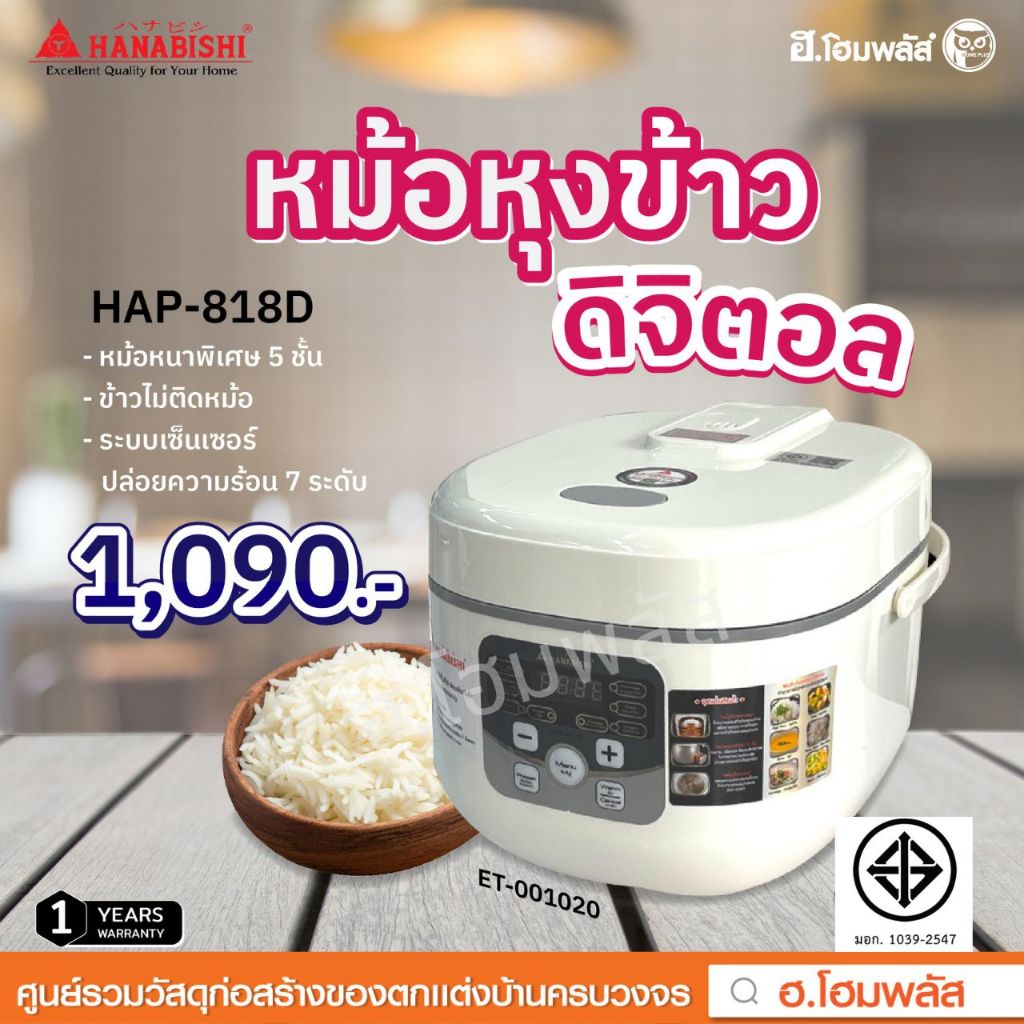 Hanabishi หม้อหุงข้าวดิจิตอล รุ่น HAP-818D ความจุ 1.8 ลิตร