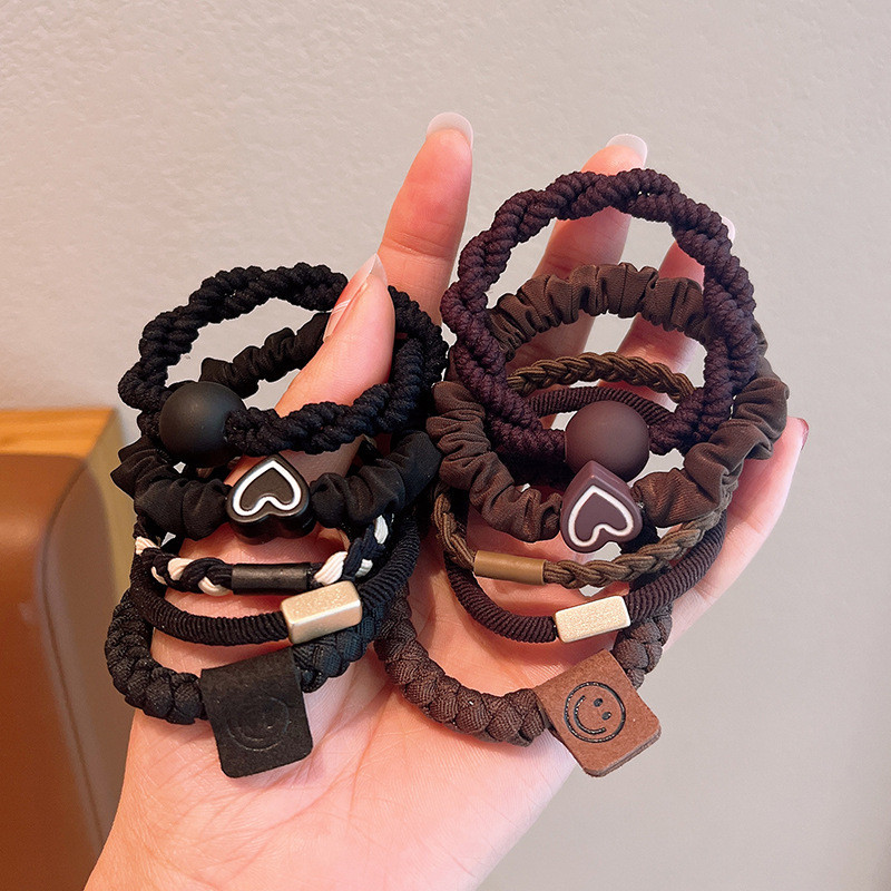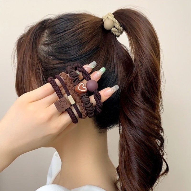 5 ชิ้น ยางรัดผม สีน้ําตาล แฟชั่นเกาหลี ความยืดหยุ่นสูง สําหรับผู้หญิง