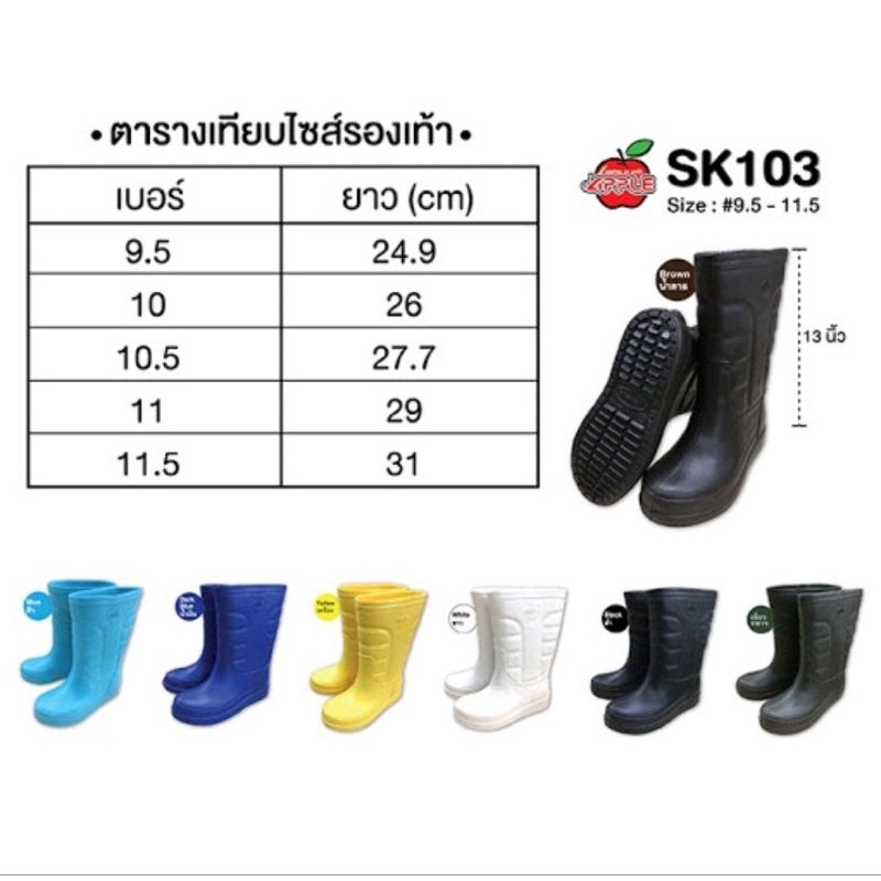 🔥ไซส์ใหญ่12-12.5🔥Apple บูทกันน้ำ รุ่นSK103 เ นื้อไฟล่อน เบามาก สูง13"