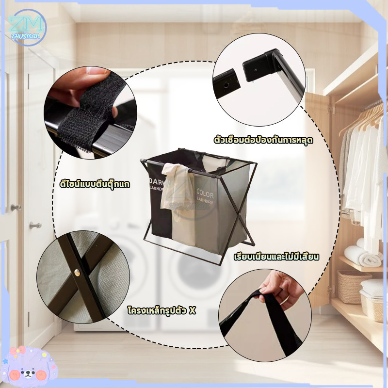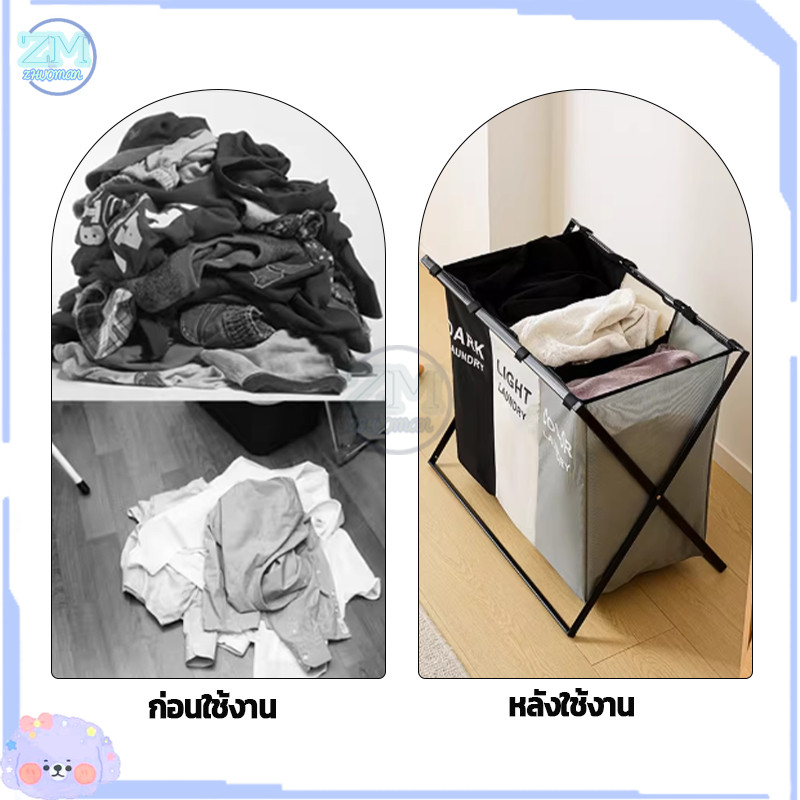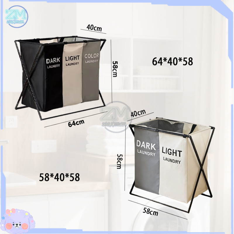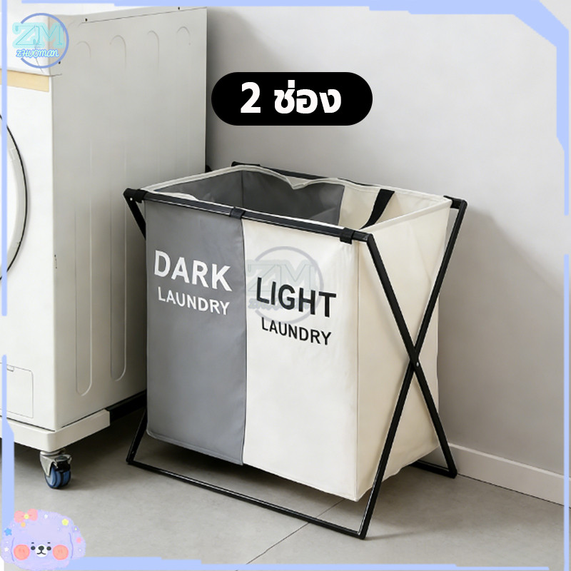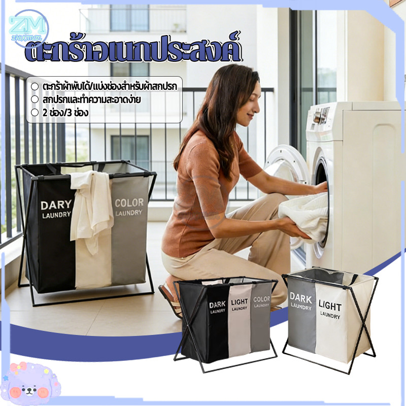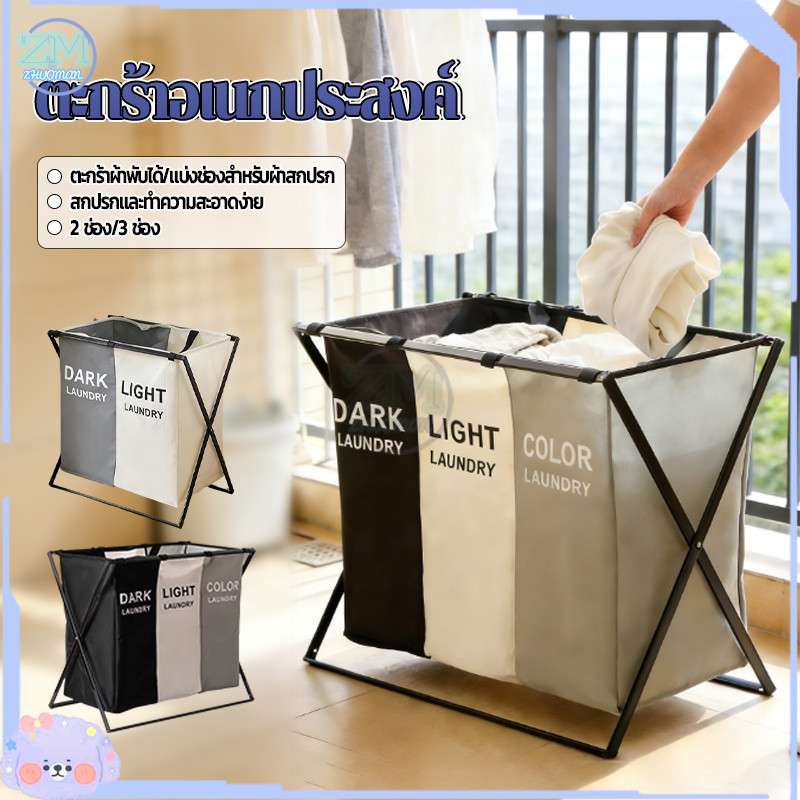 ตะกร้าใส่ผ้า ตะกร้าผ้า ตะกร้าอเนกประสงค์ เก็บเสื้อผ้า ตะกร้าแบ่งชนิดเสื้อผ้า อลูมิเนียม 2/3ช่อง ความจุขนาดใหญ่