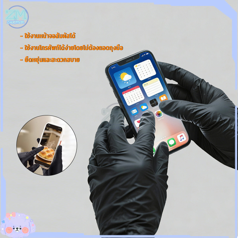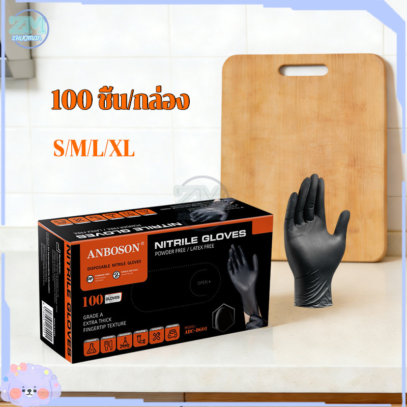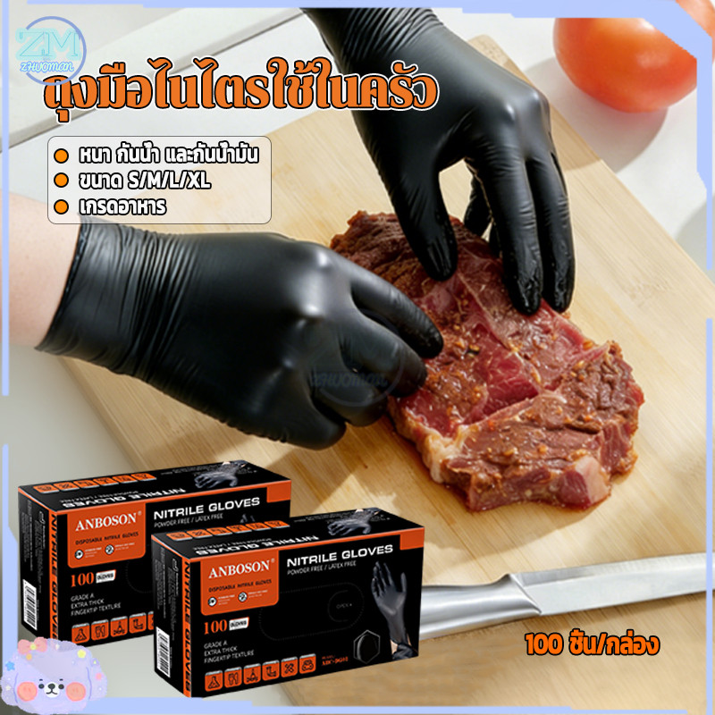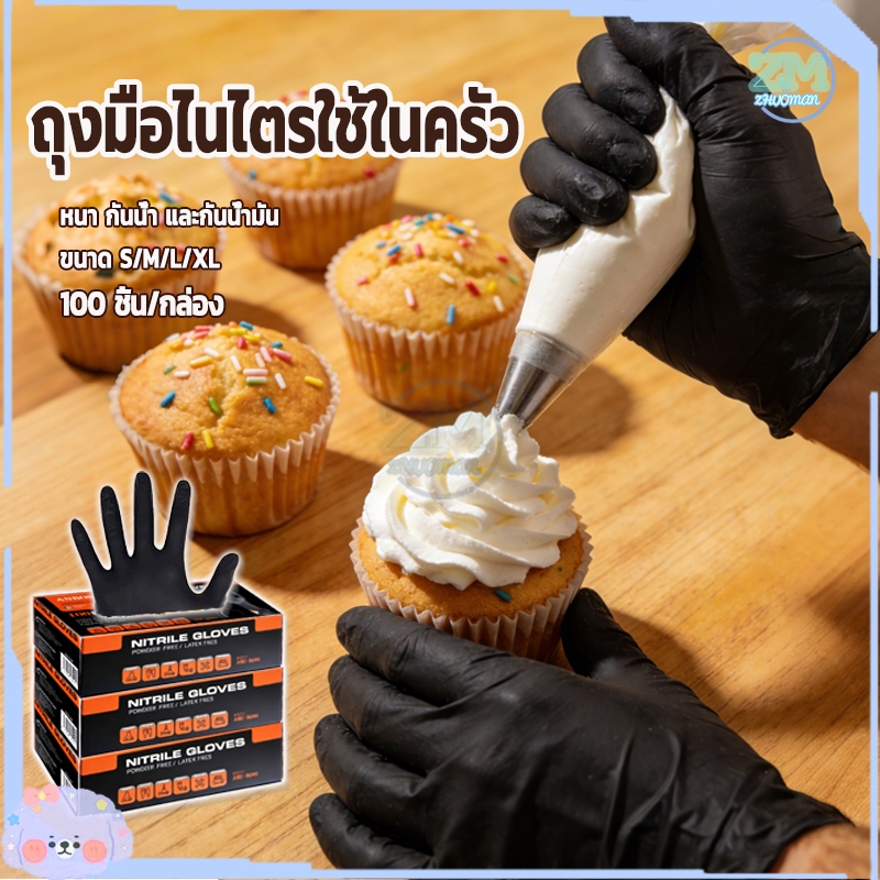 ถุงมือไนไตร ถุงมือยาง ถุงมือทำอาหาร ไม่มีแป้ง 100ชิ้น อเนกประสงค์ สัมผัสอาหารได้ มี4ขนาด ไม่มีแป้ง กันน้ํา