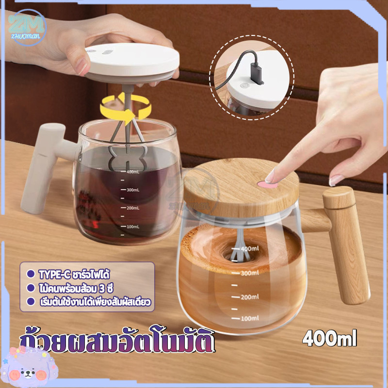 แก้วชงอัตโนมัติ ถ้วยผสมอัตโนมัติ 400ml ถ้วยผสมไฟฟ้า แบบพกพา ชาร์จไฟด้วย TYPE-C ถ้วยกาแฟ ปั่นเครื่องดื่มให้เข้ากันง่าย ๆ