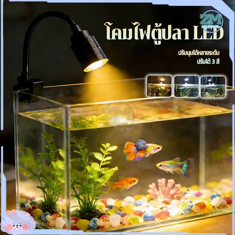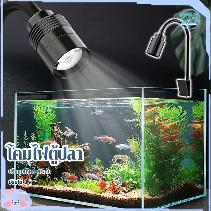 โคมไฟตู้ปลา ไฟตู้ปลา 3สี ไฟตู้ปลาเล็ก จำลองแสงธรรมชาติUSB กันน้ํา การหมุน360° การหรี่แสง ไฟสปอตไลท์ สําหรับตกแต่งตู้ปลา