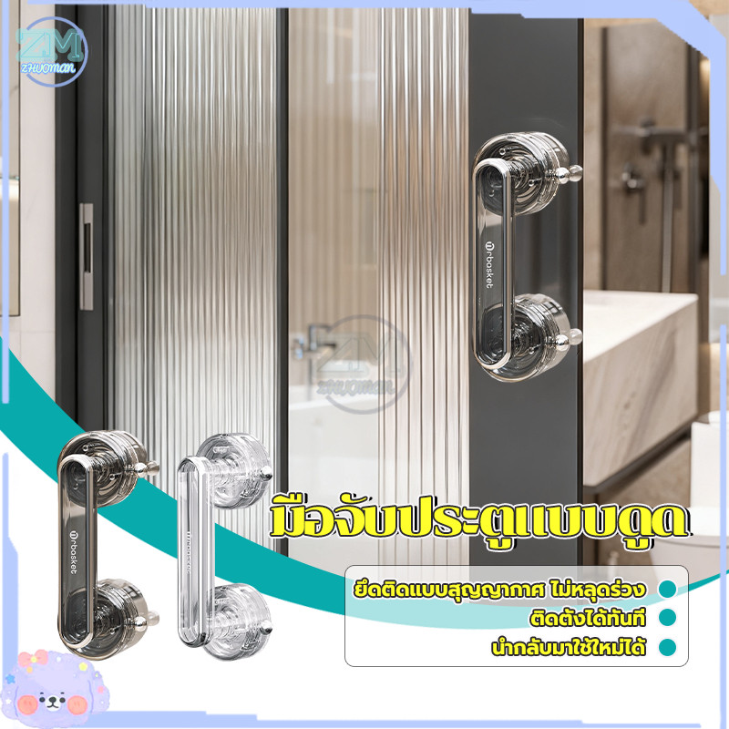 มือจับประตูถ้วยดูด มือจับประตู ที่จับประตูบานเลื่อนกันลื่นกันน้ํา ไม่ต้องเจาะรู แรงดึงสูง เสนอด้ามจับปลอดภัย บานเลื่อน