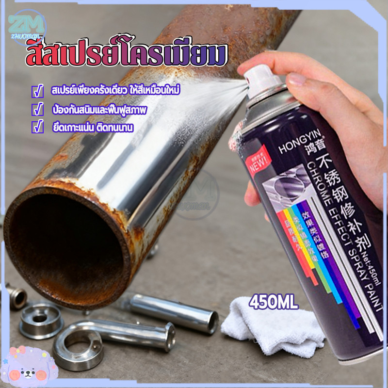 สีสเปรย์โครเมี่ยม 450ml สีพ่นล้อแม็ก สีพ่นรถยนต์ สีโครเมี่ยมแท้ กระจกเงา ป้องกันสนิมได้ยาว แห้งเร็วและใช้งานง่าย