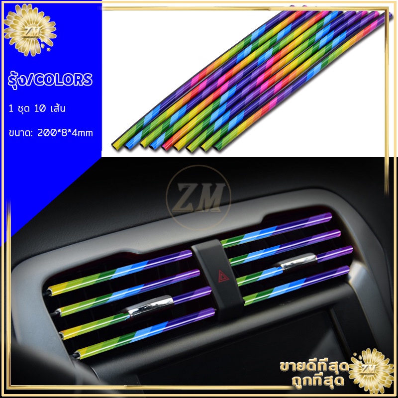 แถบตกแต่งช่องแอร์ 10ชิ้น เส้นแต่งคอนโซลช่องแอร์DIYช่องแอร์ ของตกแต่งในรถยนต์ ตกแต่งภายในรถยนต์ ติดตั้งง่าย มีให้เลือก5สี