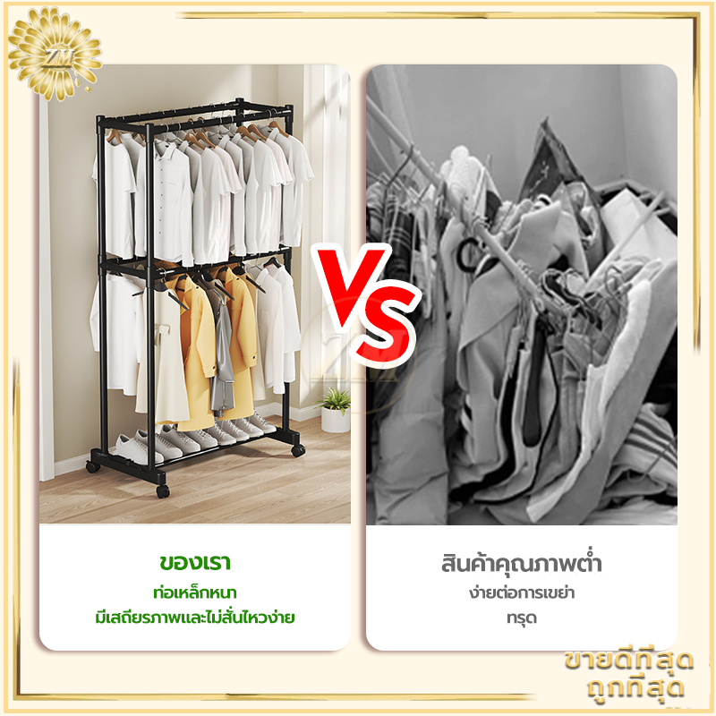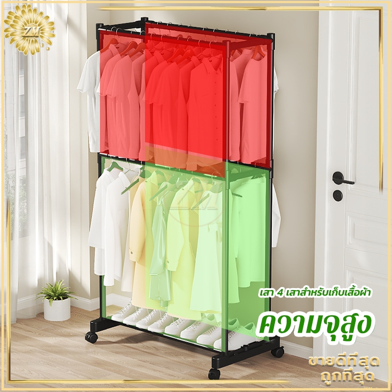 ราวตากผ้าสแตนเลส ราวตากผ้าคอนโด ราวแขวนเสื้อผ้า โครงเหล็ก คุณภาพสูง ราวอเนกประสงค์ แบบราวคู่ 2ชั้น มีล้อ