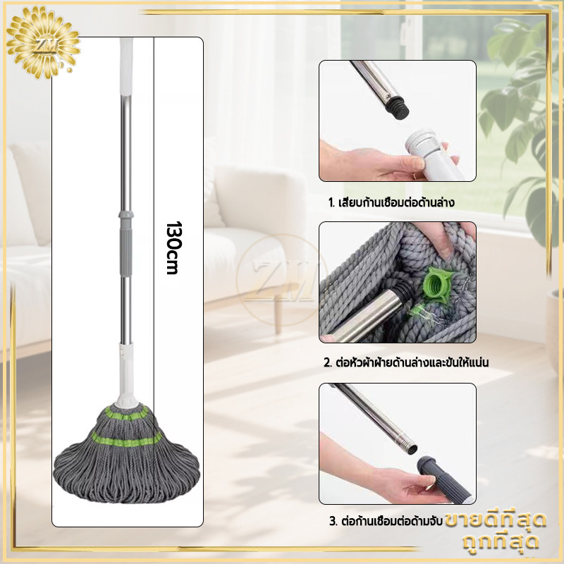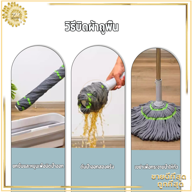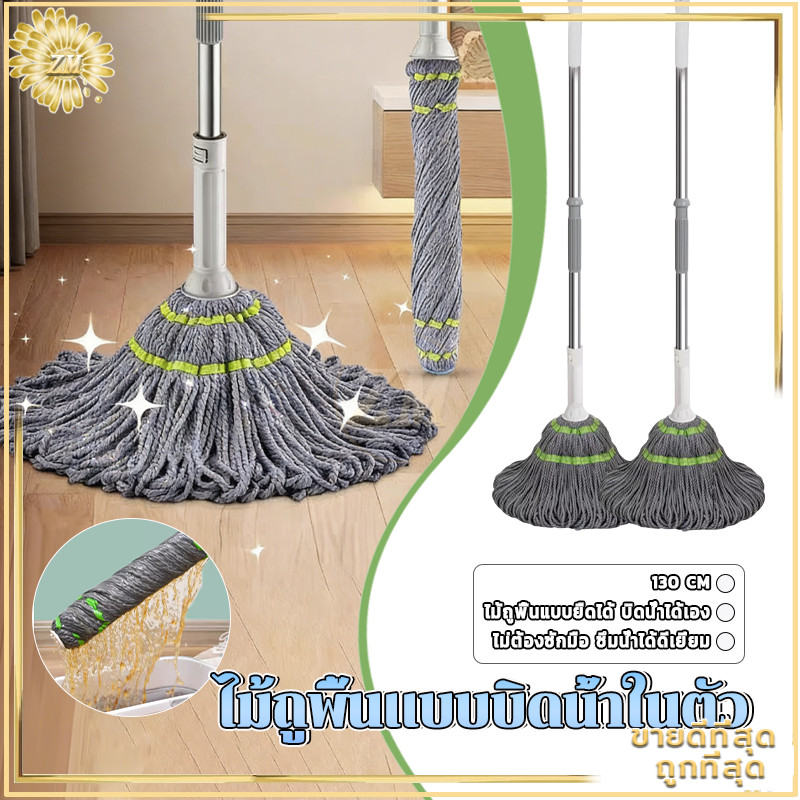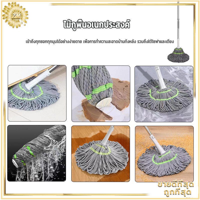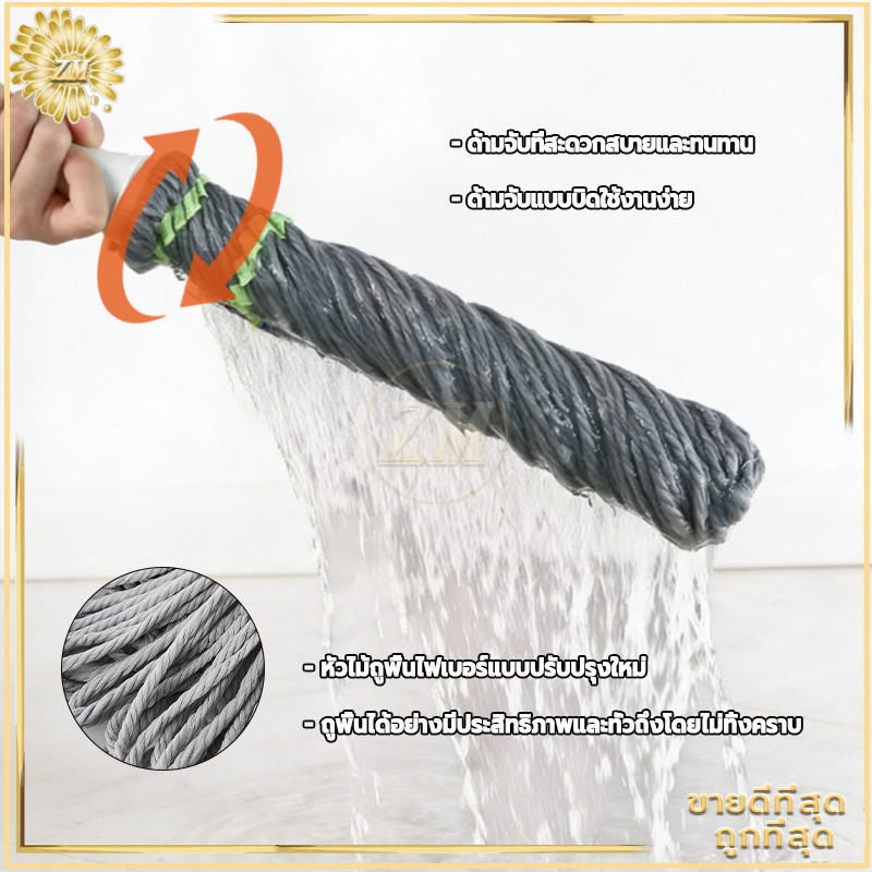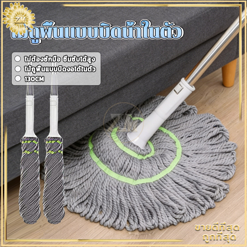 ไม้ถูพื้นแบบบิด ไม้ถูพื้น ไม้ถูพื้นเเบบบิดน้ำในตัว Spin Mop ซับน้ำแห้ง บิดได้เลยไม่เปียกมือ หมุนได้ 360 องศา น้ำหนักเบา