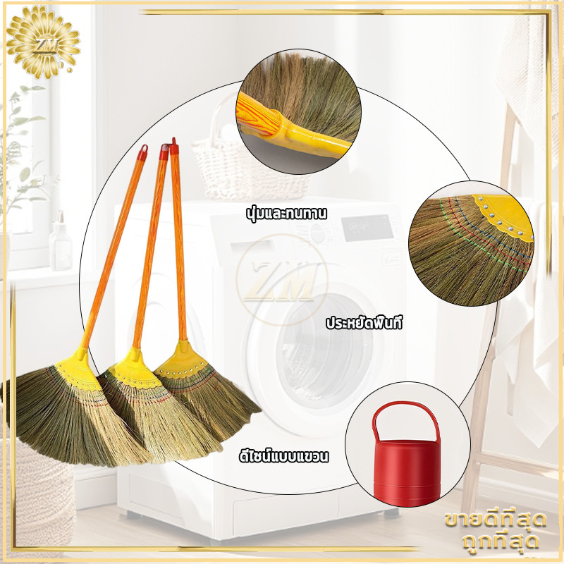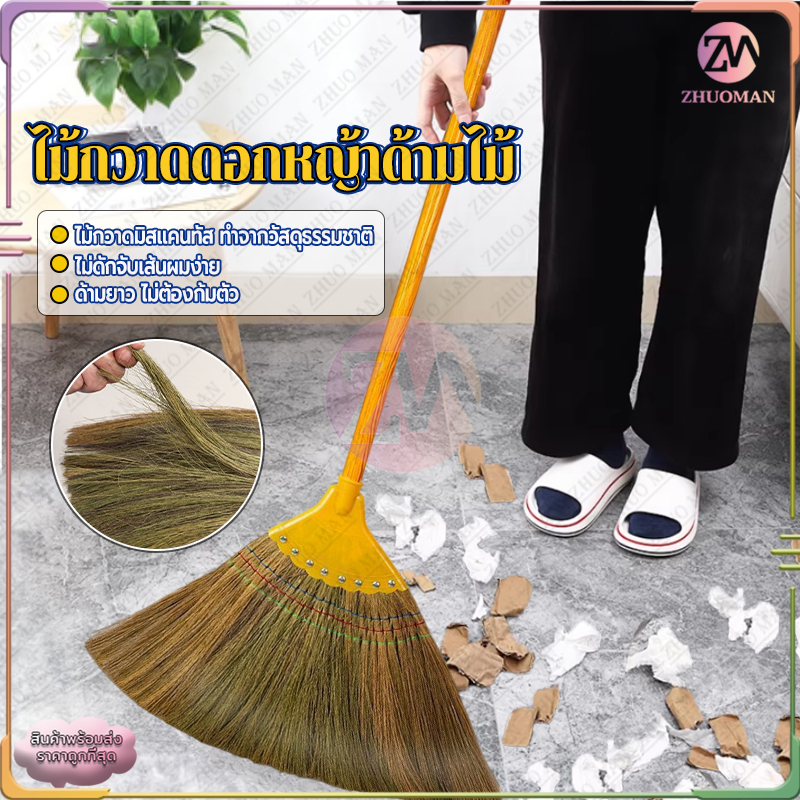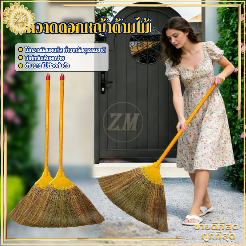 ไม้กวาดดอกหญ้า ไม้กวาดดอกหญ้าทำมือ ไม้กวาด ขนไม้กวาดแน ่น ไม่หลุดง่าย ตัวด้ามไม้พร้อมที่แขวนจัดเก็บได้สะดวก