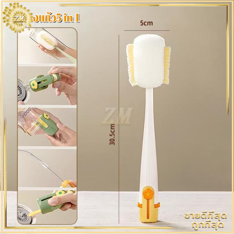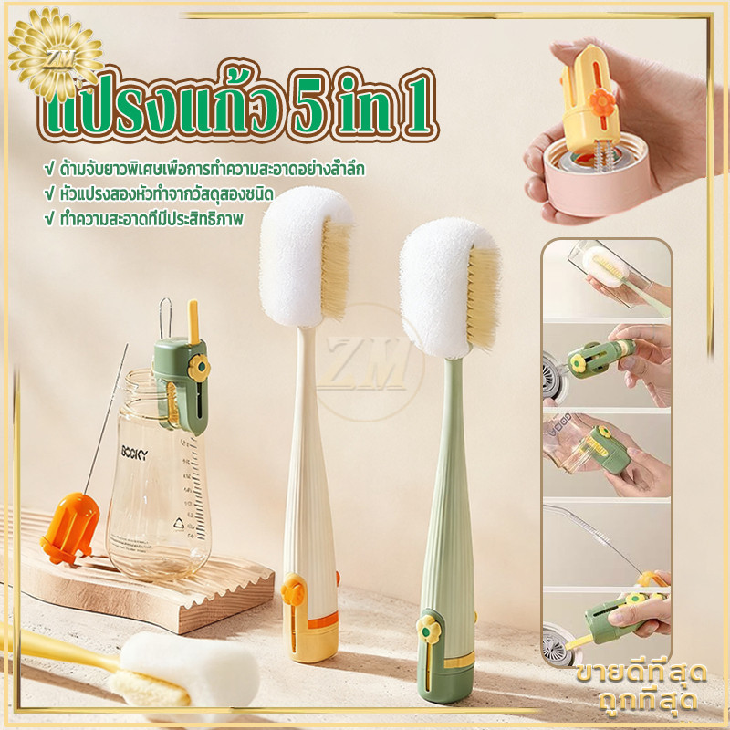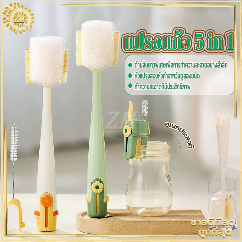 แปรงแก้ว5 in 1 แปรงขวด แปรงล้างแก้วน้ำ มัลติฟังก์ชัน:แปรงดูดหัวนม,แปรงซอกซอน,แปรงหลอดดูด,แปรงถ้วย,แปรงล้างขวด รุ่นใหม่ปี