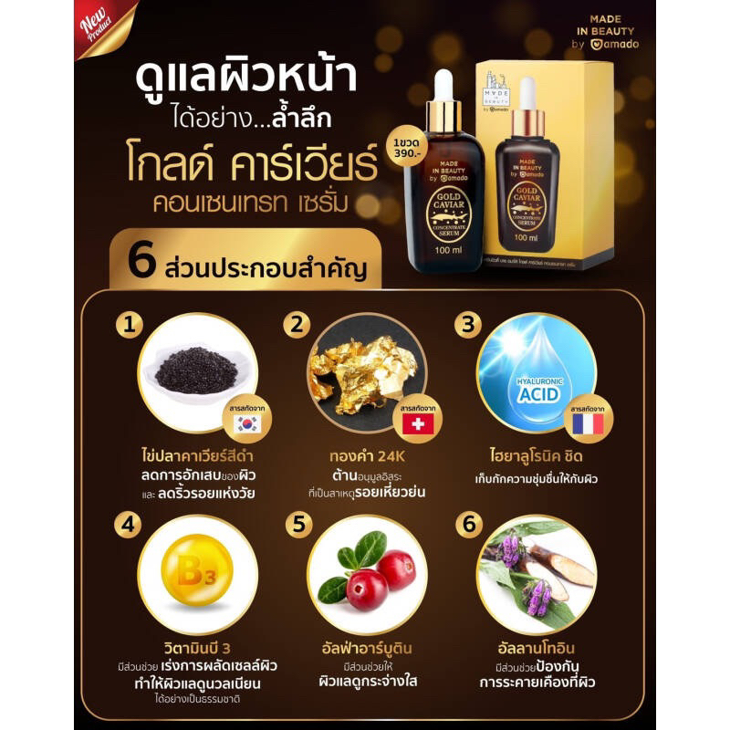 Amado Gold Caviar Concentrate Serum อมาโด้ โกลด์คาเวียร์ เซรั่ม และอมาโด้ ซุปเปอร์ วิตซี เซรั่ม ขนาด 100 กรัม