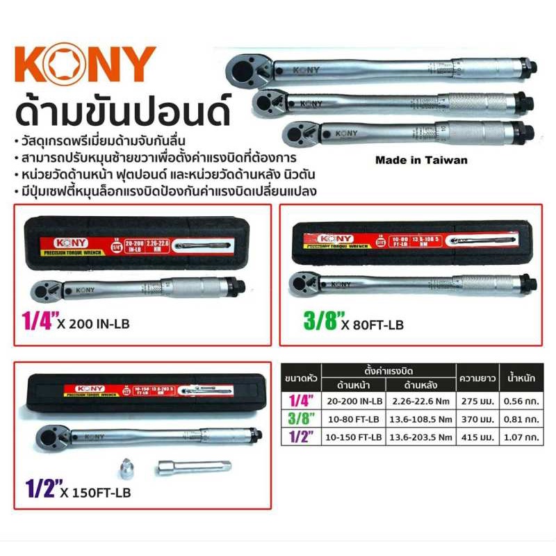 KONY ประแจปอนด์ด้ามขันปอนด์ มี 3ขนาด 2หุน 3หุน 4หุน