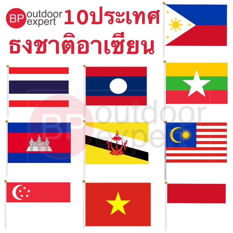 ธงชาติ อาเซียน ธงถือ ธงโบก ธงชาติ ขนาด 21x14 cm สินค้าพร้อมจัดส่งจากไทย