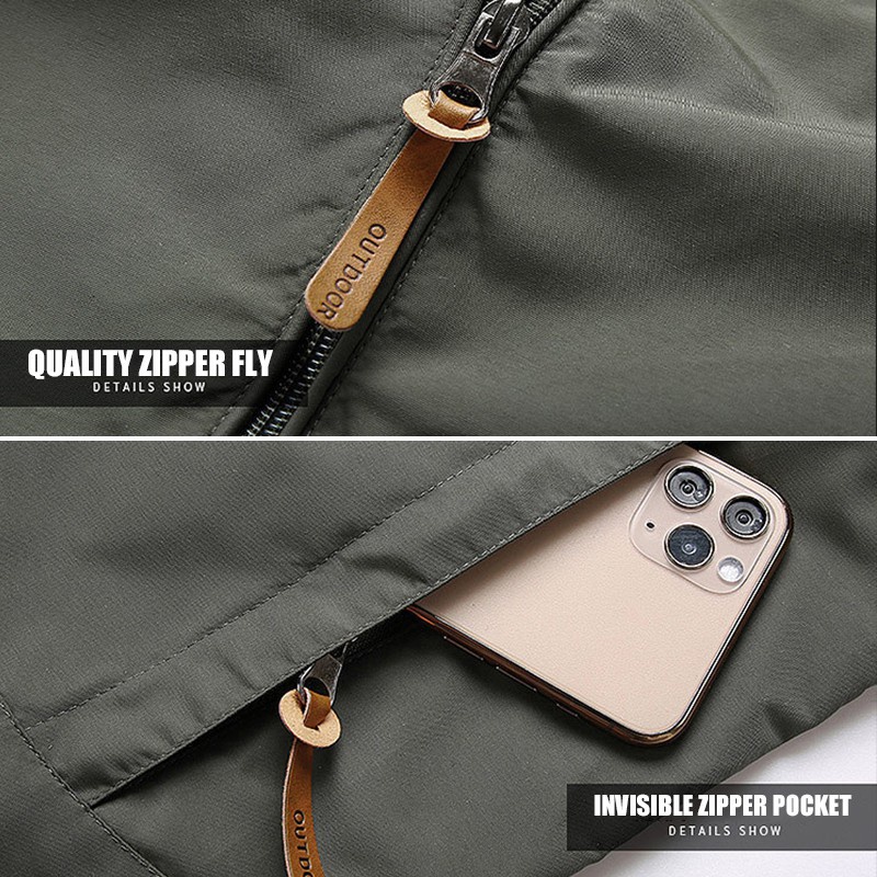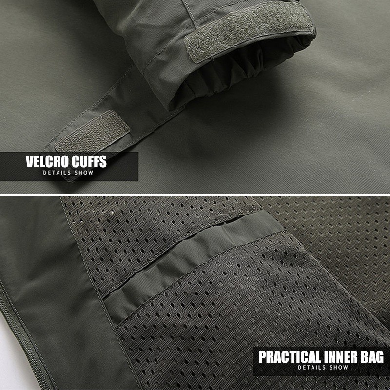 แจ็คเก็ตผู้ชายกันน้ำกลางแจ้ง แจ็คเก็ตหนังฉลามซิป Hooded แจ็คเก็ตผู้ชาย
