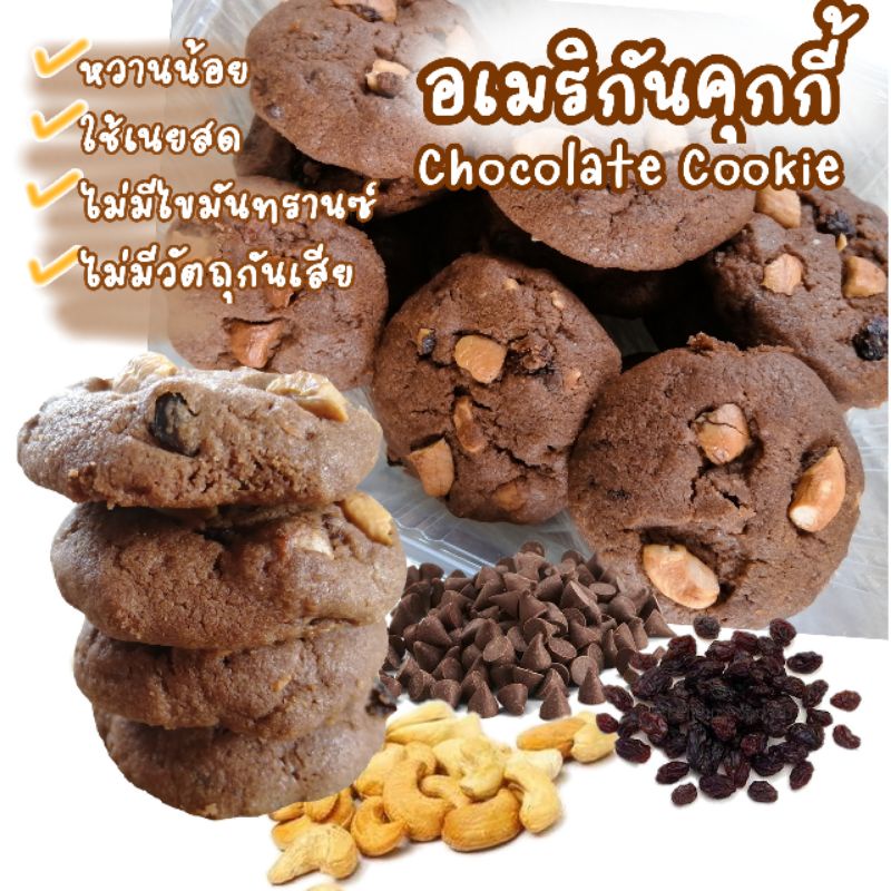 อเมริกันคุกกี้ รสช็อคโกแลต คุกกี้เนยสด ไม่มีไขมันทรานส์ สูตรหวานน้อย
