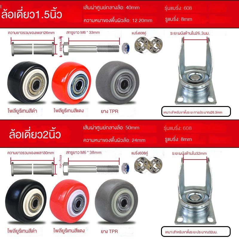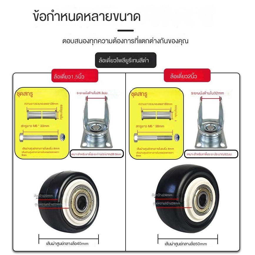 สินค้าในสต็อก,[4เริ่มต้น] ล้อเดียวเพชรทอง1.5นิ้ว2นิ้วพร้อมแบริ่งล้อสากลล้อเดียวล้อโซฟาล้อสากล