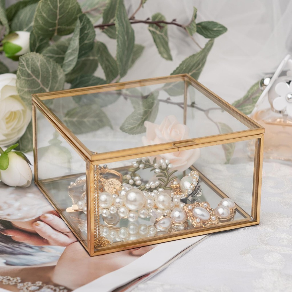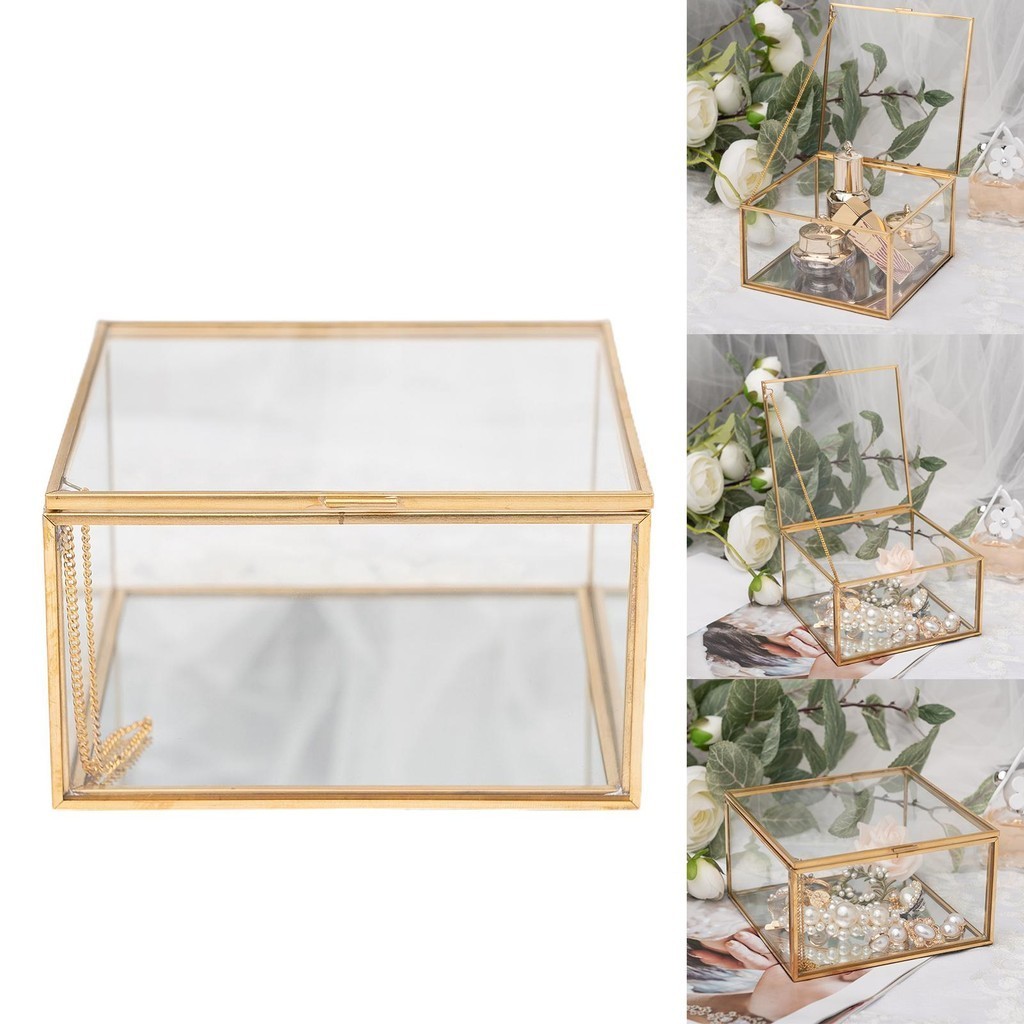 [Lszcx6l] Vintage Brass & Clear Glass ตกแต่งตกแต่ง,เครื่องประดับขนาดเล็กกล่อง Organizer พร้อมฝาปิดสลัก 5x5x3"