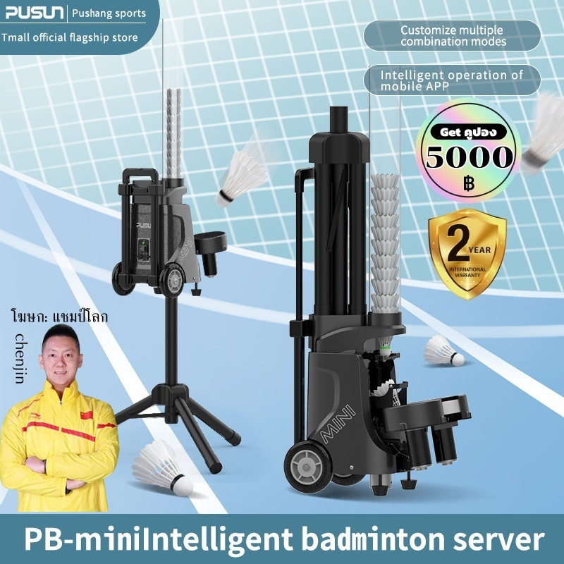 【พร้อมส่ง】PUSUN PB-MINI PRO เครื่องฝึกแบดมินตันอัตโนมัติ Portable Badminton Ball Machine with APP ใส่บอล50 ลูก