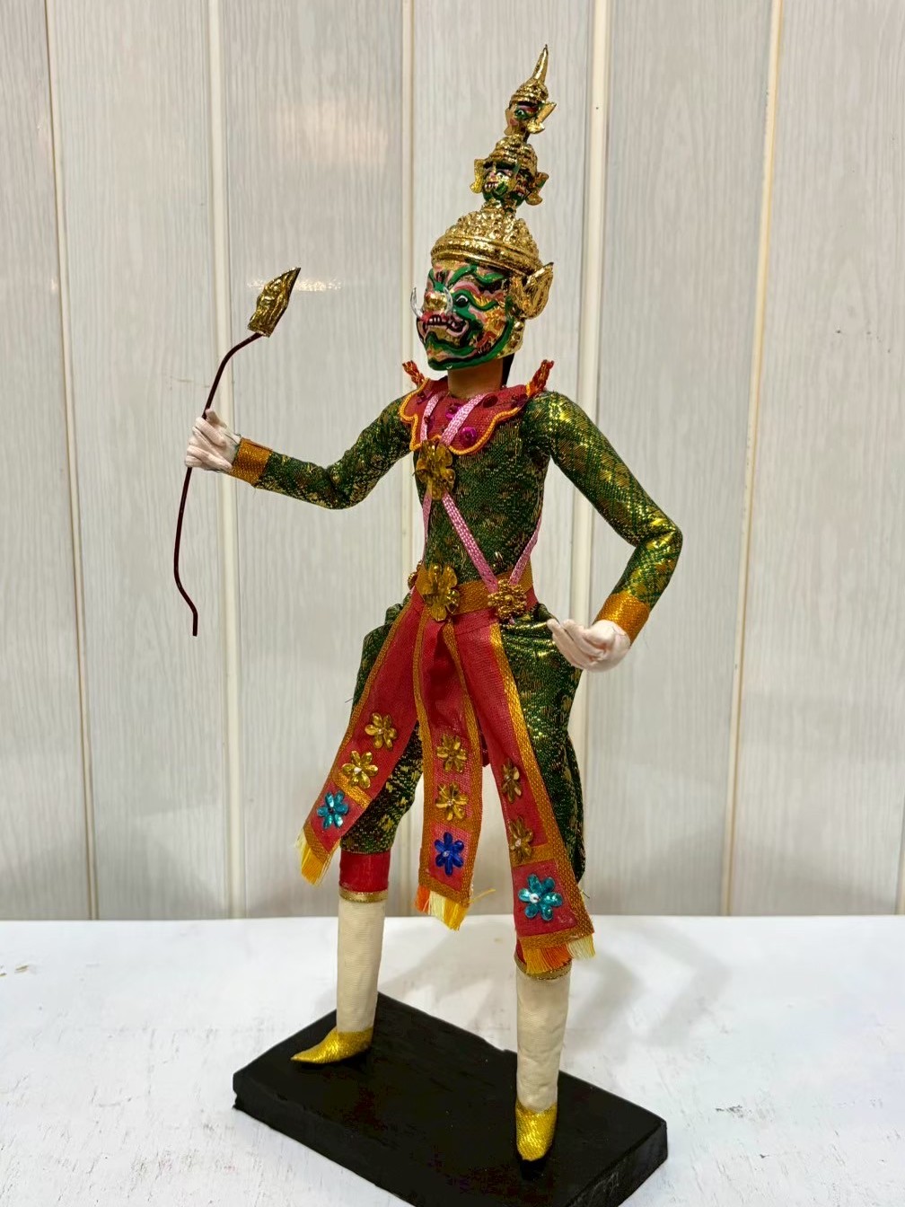 ตุ๊กตาโขน รามเกียรติ์ ทศกัณฐ์ (สีทอง) งานผ้า ฝีมือประณีต สูง 14 นิ้ว ของที่ระลึก ของตกแต่งบ้าน ของขวัญ Khon mask