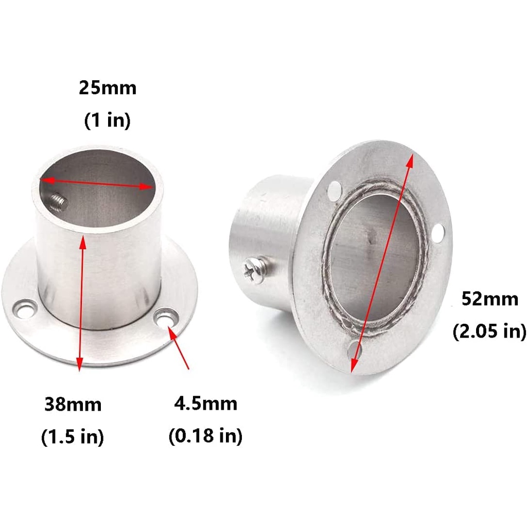 ตัวรับราว แป้นรับราว แป้นยึดราว สแตนเลส กลม 25 มม 32 มม สำหรับตู้เสื้อผ้า ราวผ้าม่าน ขนาด 1 นิ้ว (2 ชิ้น/ชุด)