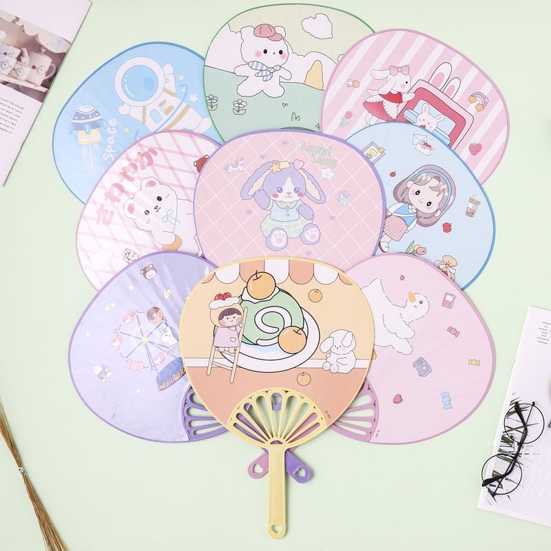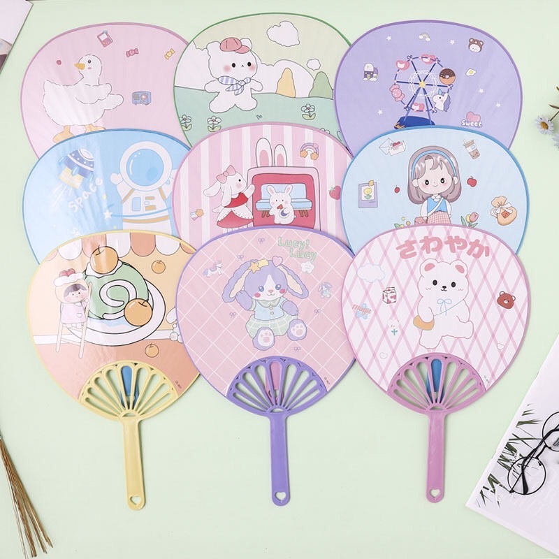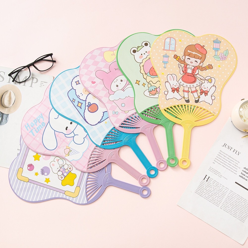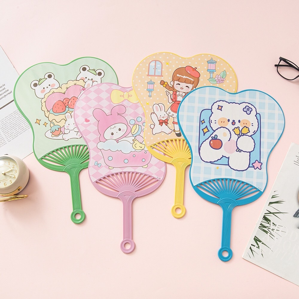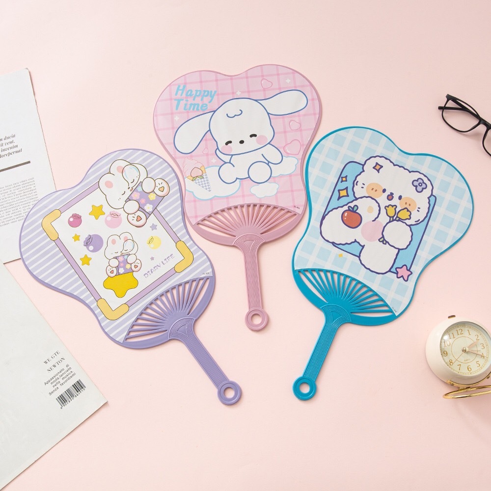พัดพลาสติก พัดลายการ์ตูน ลายการ์ตูนน่ารัก คละลาย คละสี (ขนาดใหญ่)