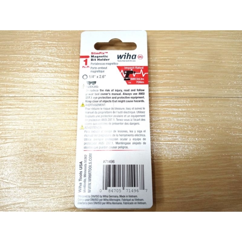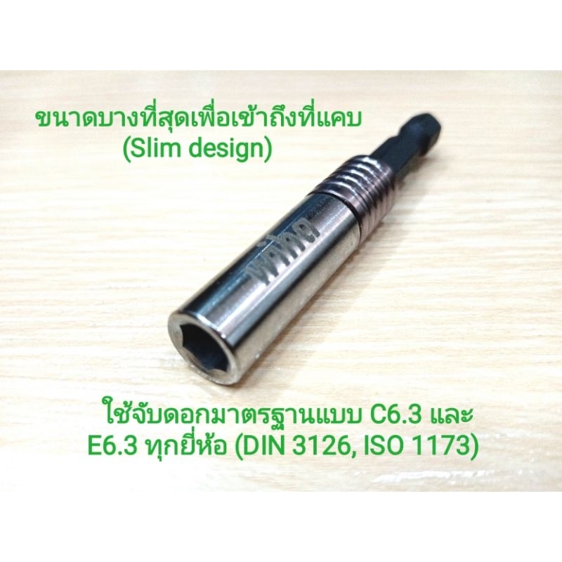 wiha Bit Holder 1/4" SlimFix for Bit C6.3 and E6.3 หัวจับดอกไขควง wiha แบบ Slim ใช้กับสว่านกระแทกได้ 70 Nm