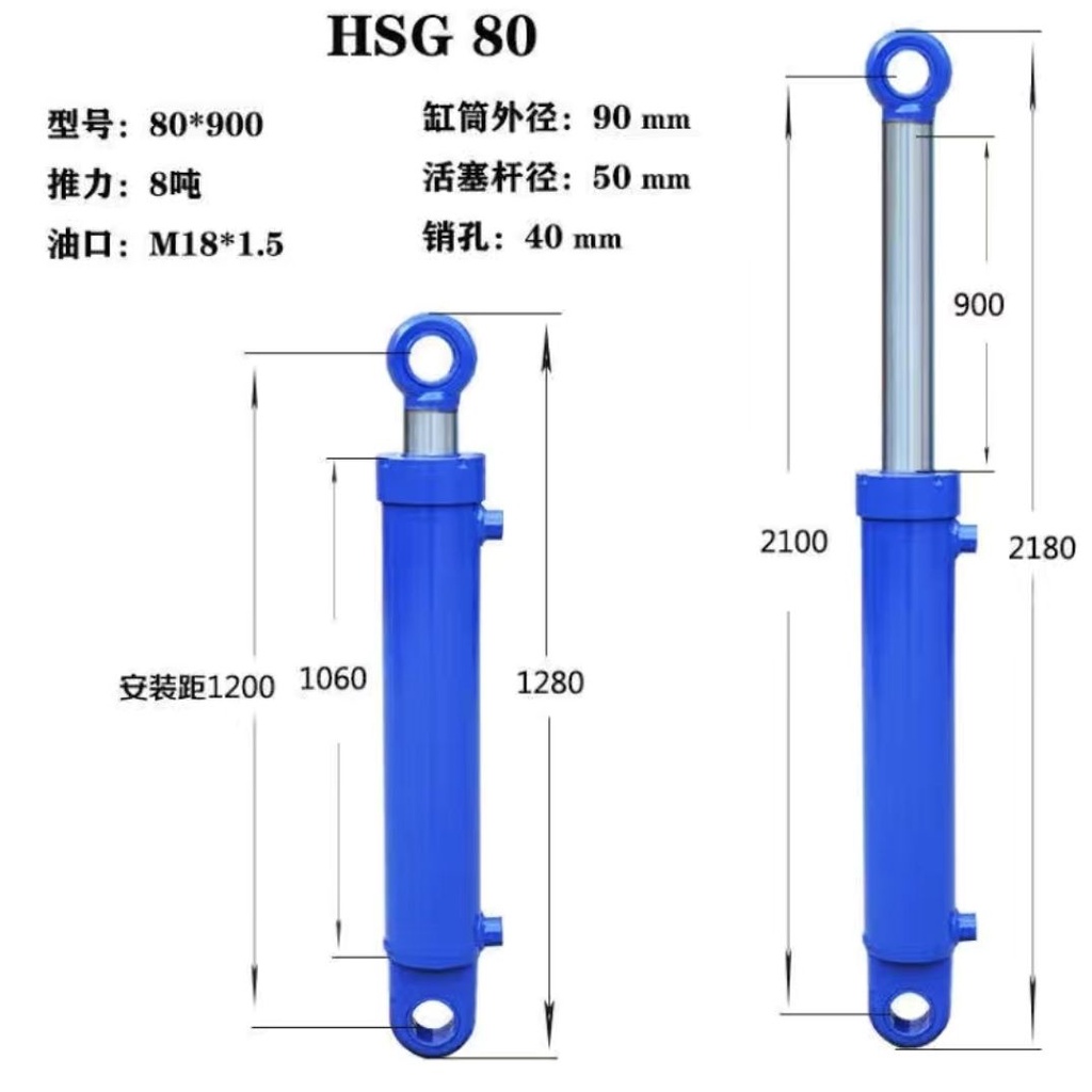 ♈กระบอกไฮดรอลิก 8 ตัน เส้นผ่านศูนย์กลาง 80 กระบอกสูบ กระบอกสูบไฮดรอลิก แรงขับกระบอกสูบสองทาง