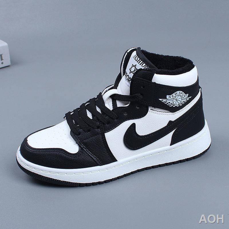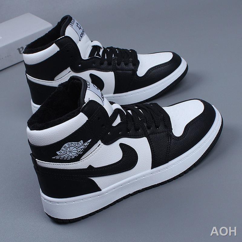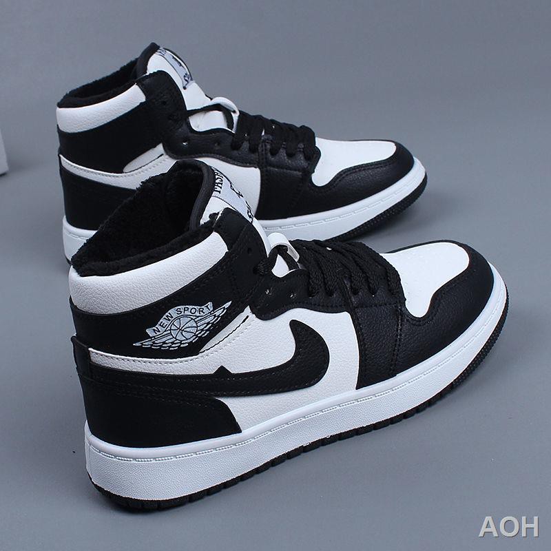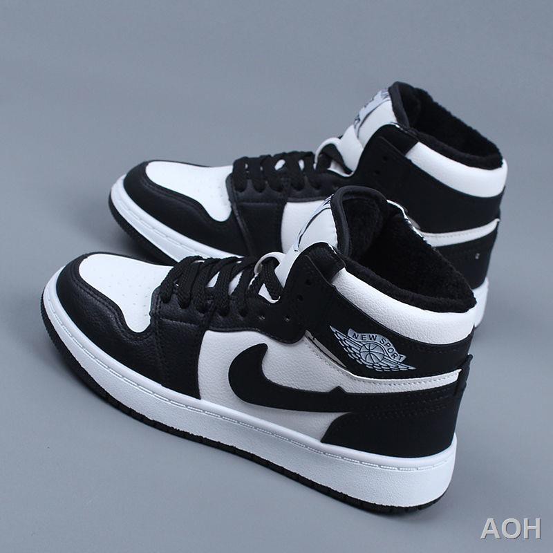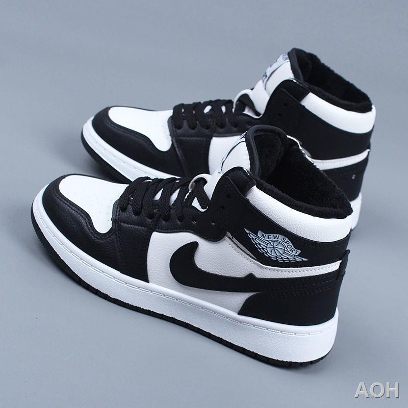 Winter plus Velvet high-top รองเท้าผู้หญิงเกาหลีรุ่น all-match flat-soled รองเท้านักเรียน AIR Force No. 1 aj รองเท้าผู้ห
