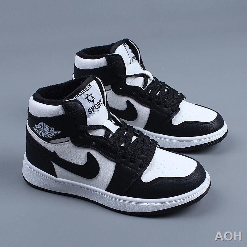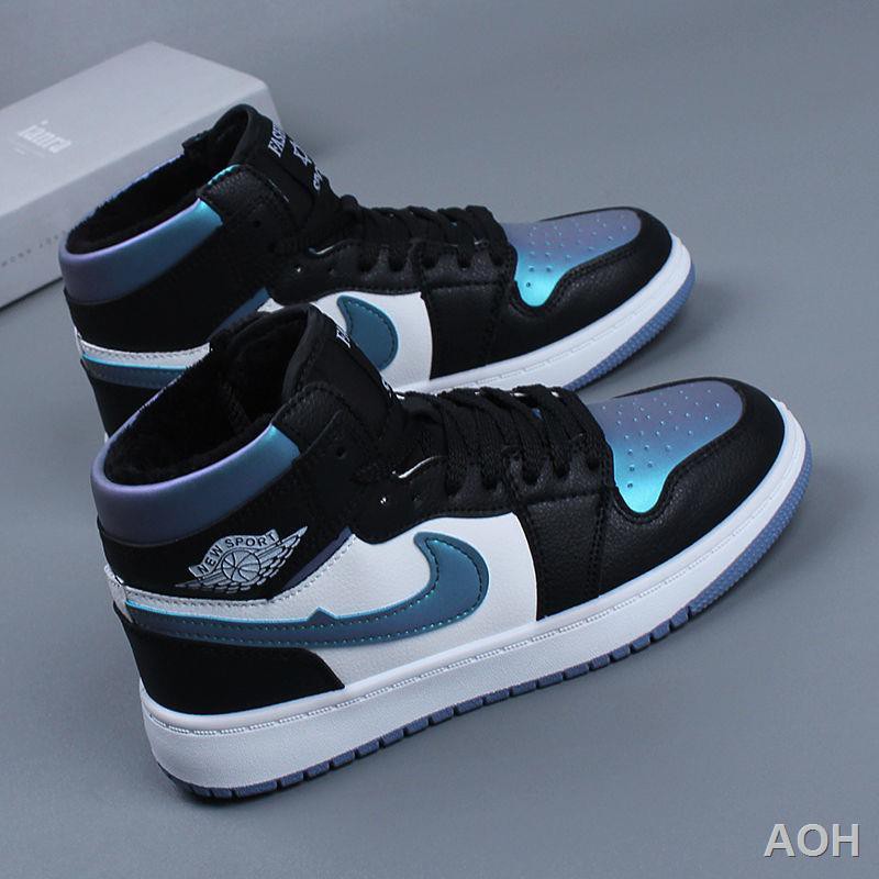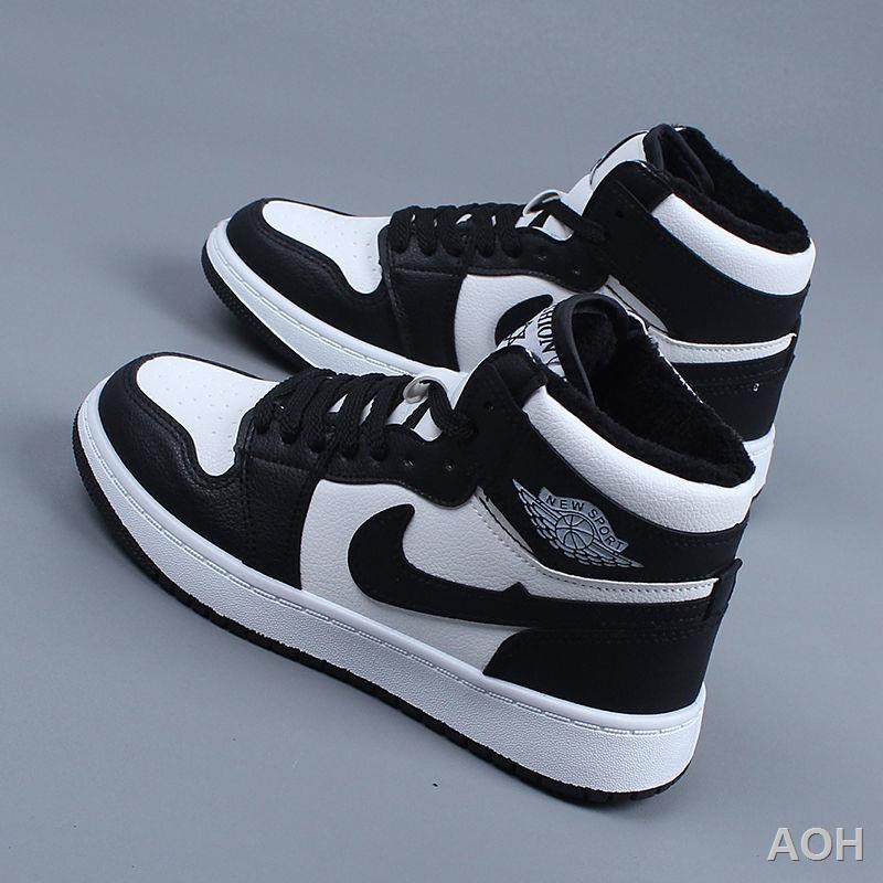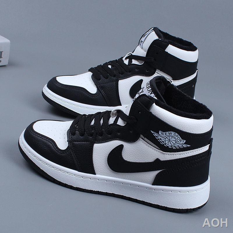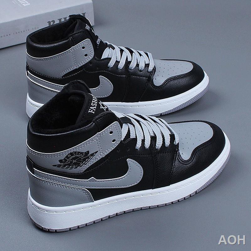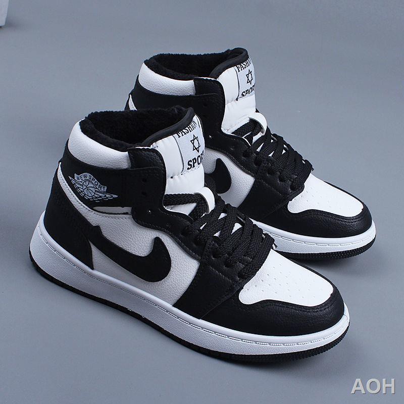 Winter plus Velvet high-top รองเท้าผู้หญิงเกาหลีรุ่น all-match flat-soled รองเท้านักเรียน AIR Force No. 1 aj รองเท้าผู้ห