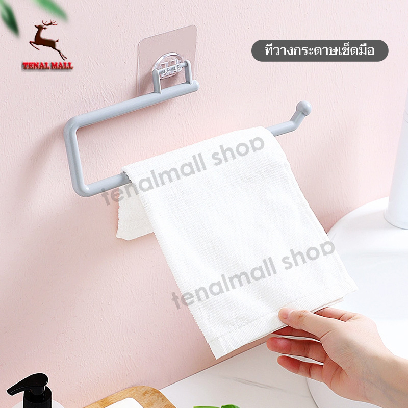 กล่องทิชชู่ม้วนติดผนัง ราวแขวนทิชชู่ ที่แขวนผ้าเช็ดมือ ที่แขวนกระดาษทิชชู่ ที่ใส่กระดาษทิชชู่ครัว แบบติดผนังไม่ต้องเจาะ