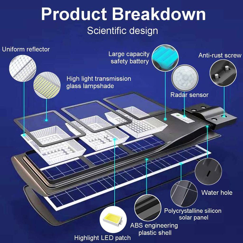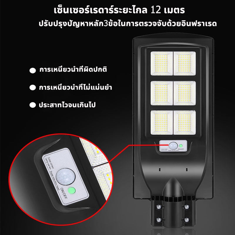 ไฟโซล่าเซลล์ 3000W ไฟเซ็นเซอร์ตรวจจับคน ไฟถนน ไฟอัจฉริยะ Solar Light ไฟพลังงานแสงอาทิตย์ รีโมทคอนโทรล ไฟติดผนัง
